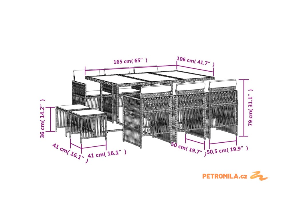 - Odolný materiál: PE ratan neboli polyratan je pevný syntetický materiál s nízkými nároky na údržbu, který vypadá jako přírodní ratan. Je lehký, snadno se čistí a běžně se používá pro venkovní nábytek díky své dlouhé životnosti a odolnosti vůči povětrnostním vlivům.
