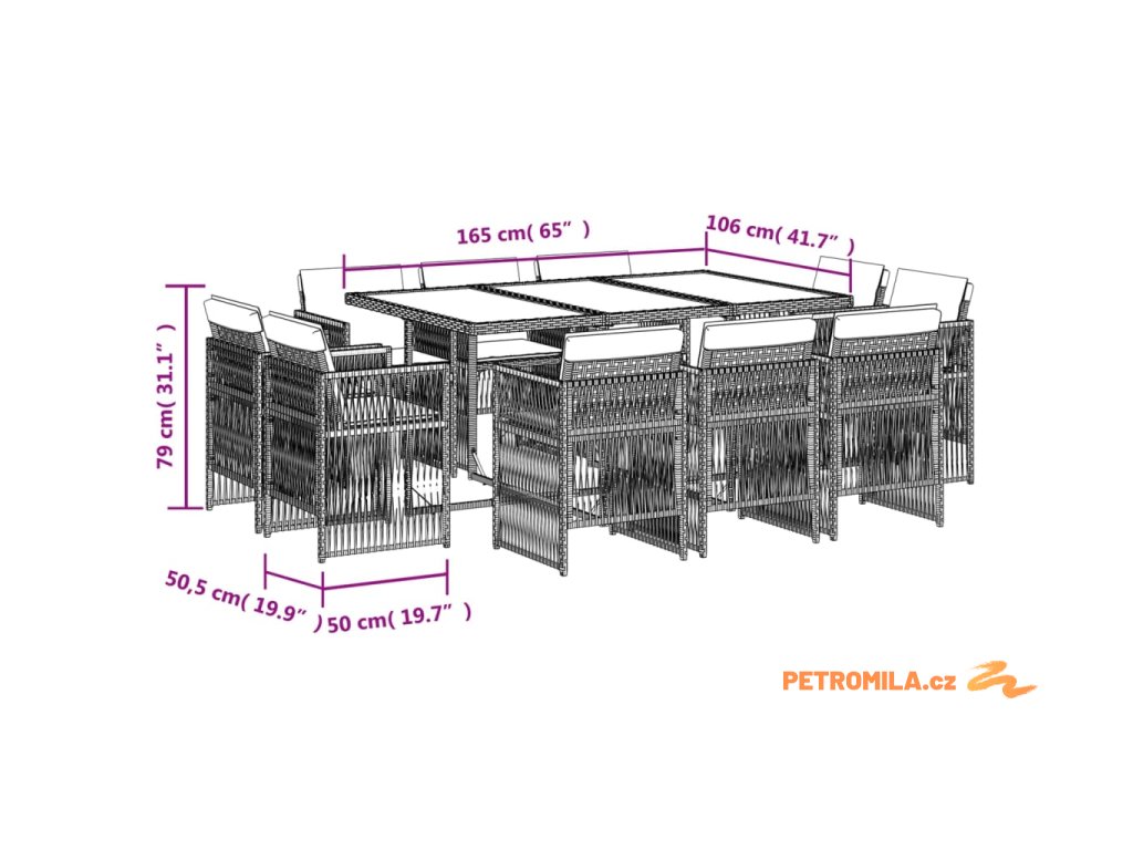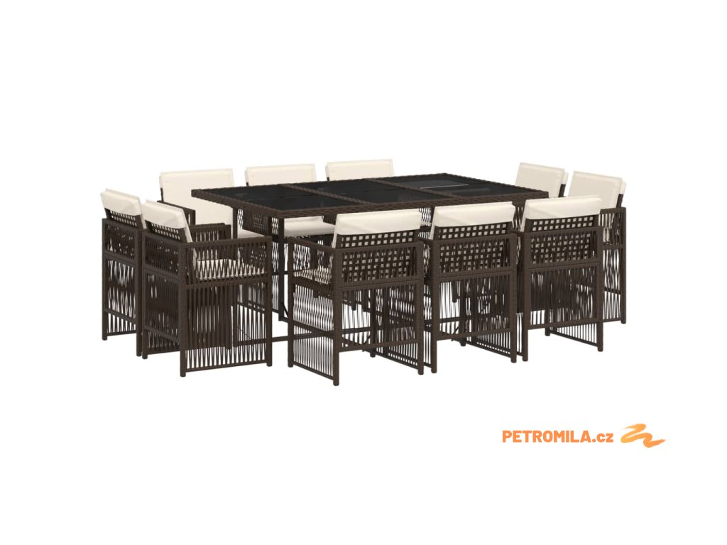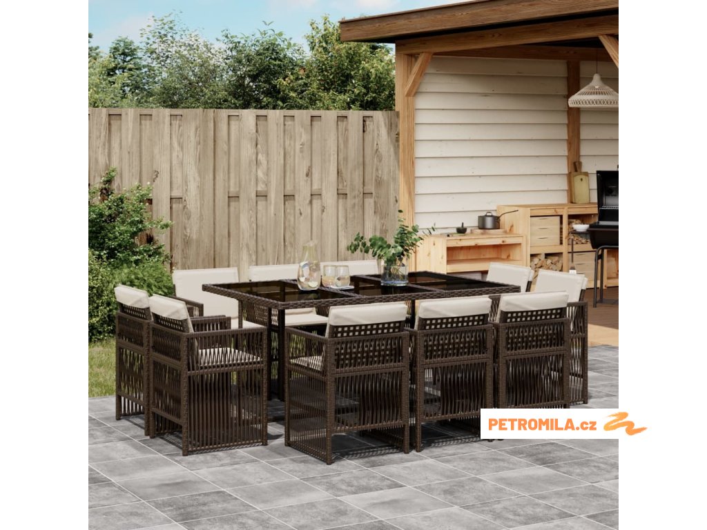 11dílný zahradní jídelní set s poduškami hnědý polyratan