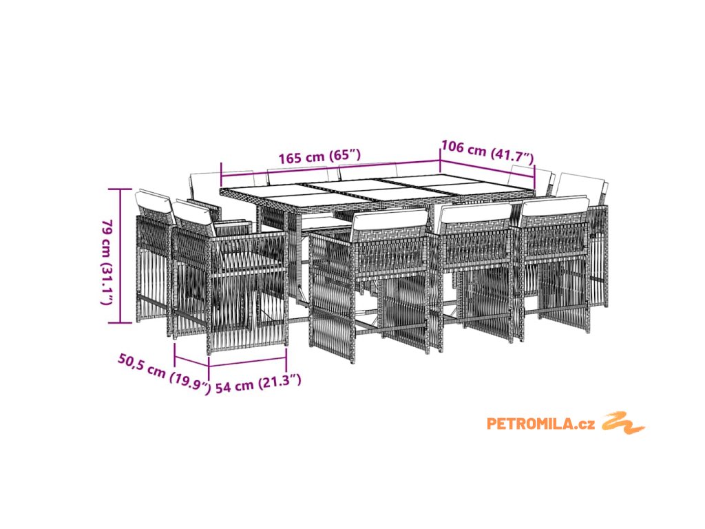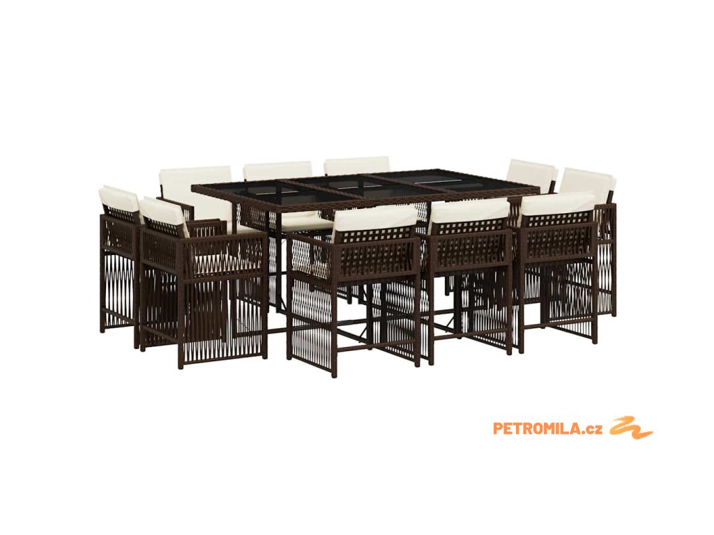11dílný zahradní jídelní set s poduškami hnědý polyratan