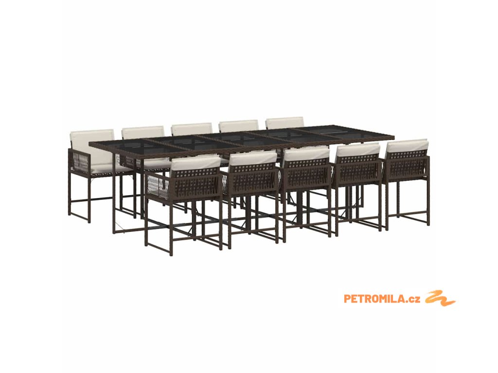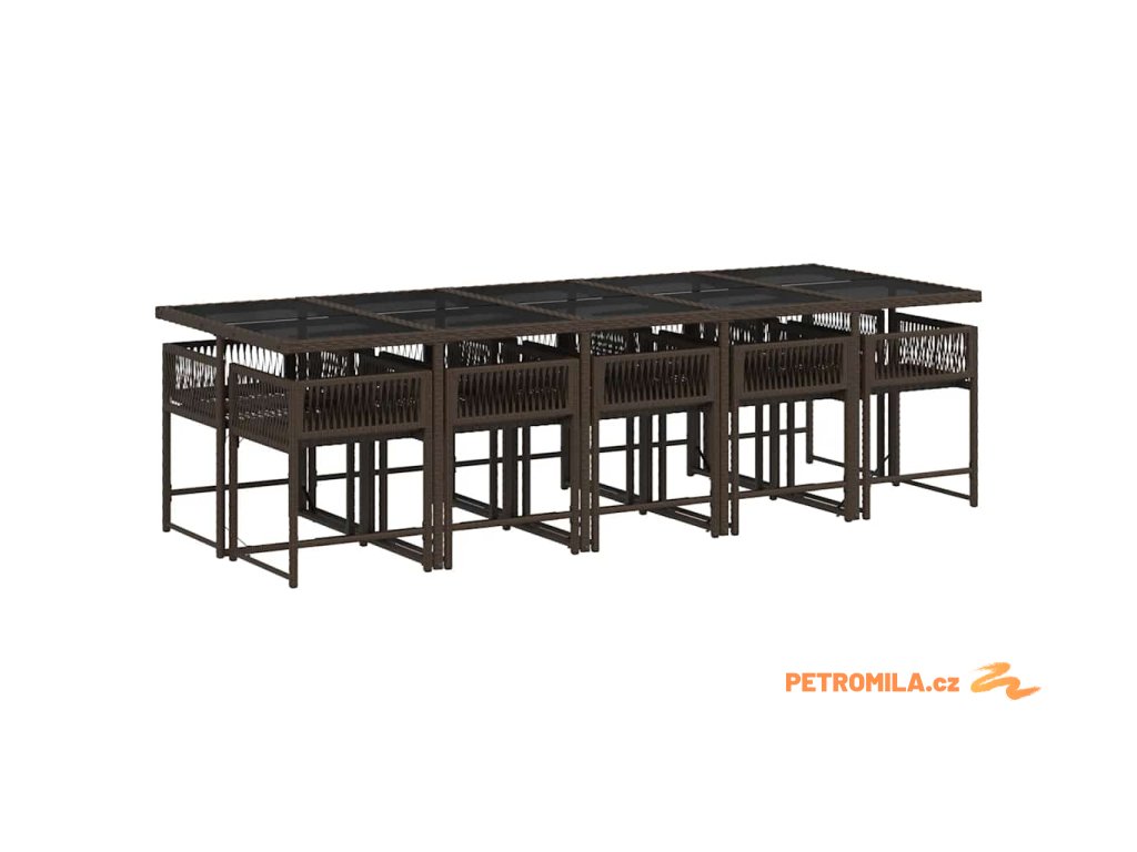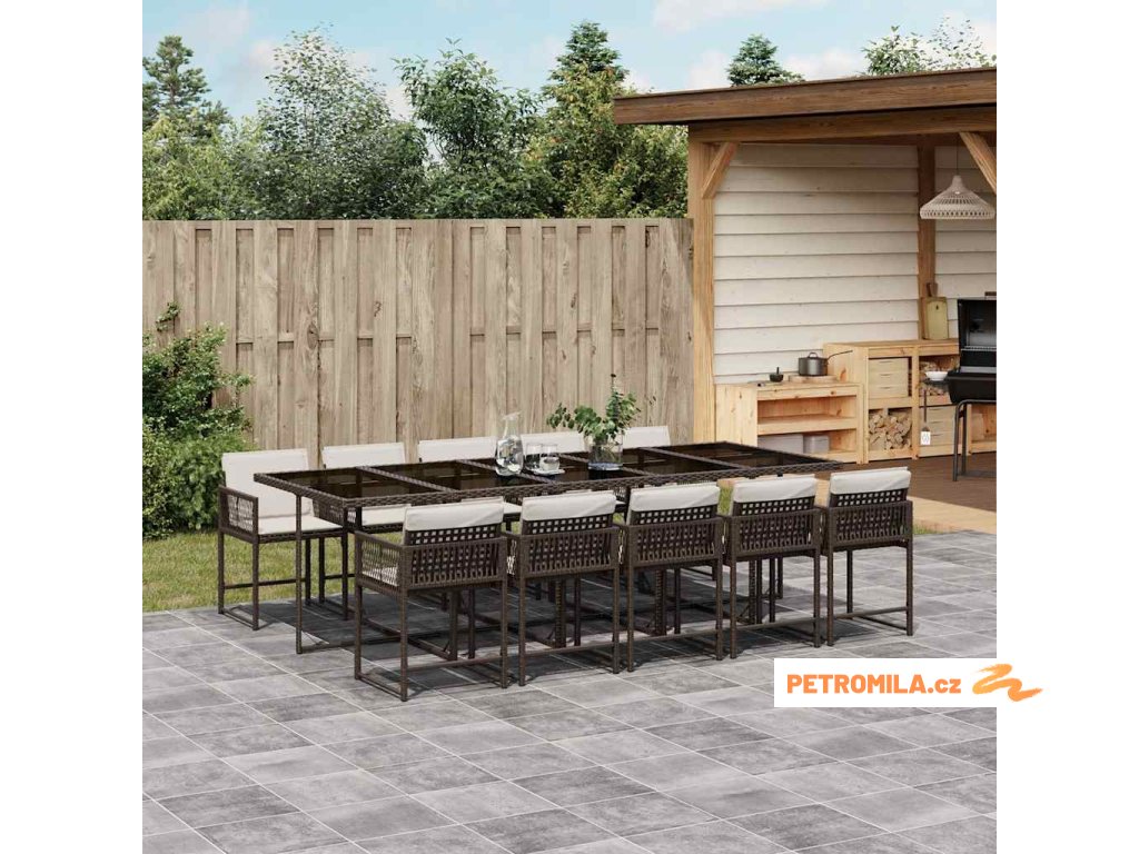 11dílný zahradní jídelní set s poduškami hnědý polyratan