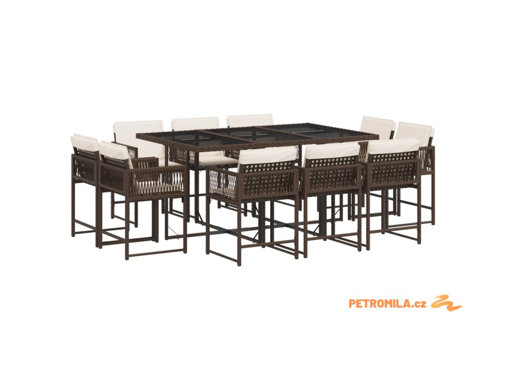 11dílný zahradní jídelní set s poduškami hnědý polyratan
