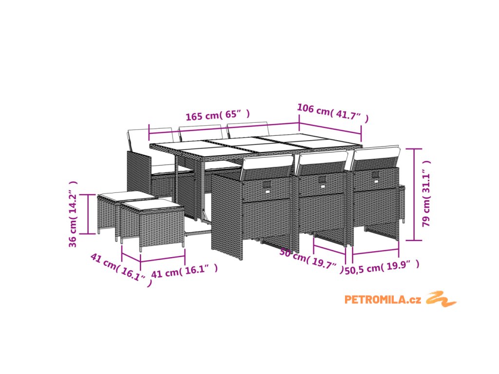 - Odolný materiál: PE ratan neboli polyratan je pevný syntetický materiál s nízkými nároky na údržbu, který vypadá jako přírodní ratan. Je lehký, snadno se čistí a běžně se používá pro venkovní nábytek díky své dlouhé životnosti a odolnosti vůči povětrnostním vlivům.