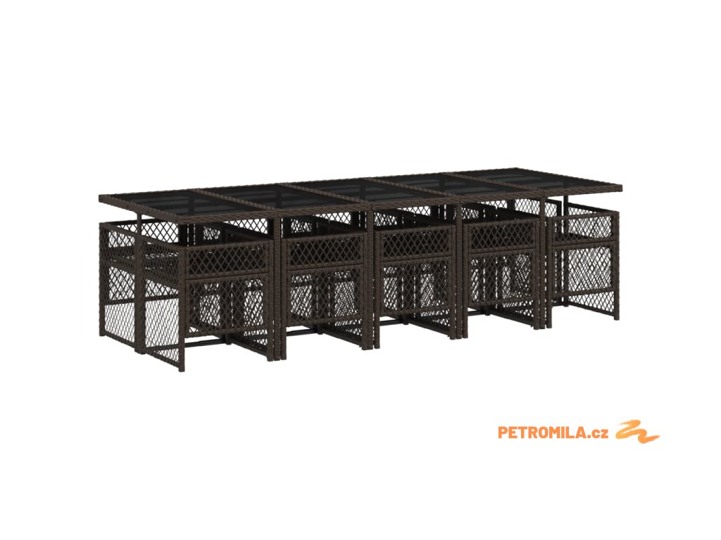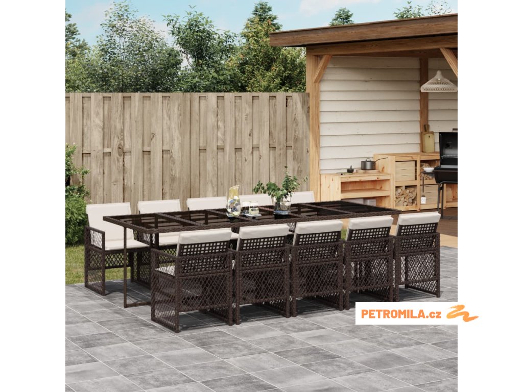 11dílný zahradní jídelní set s poduškami hnědý polyratan
