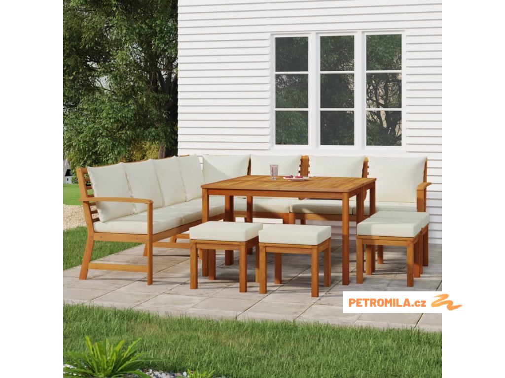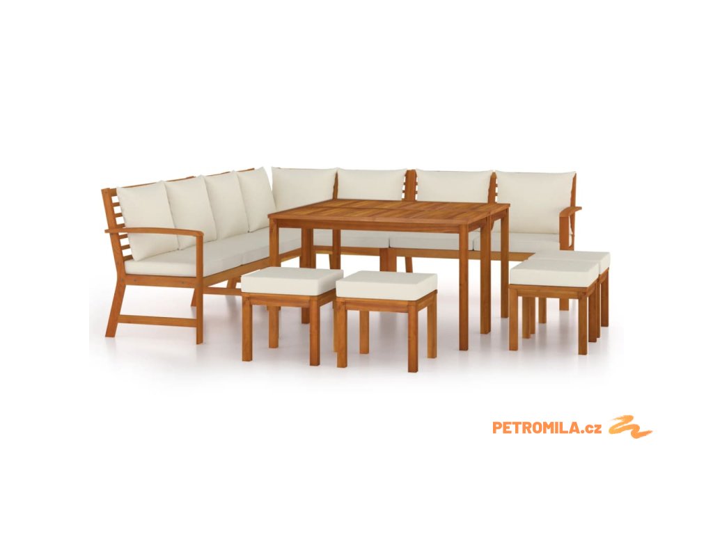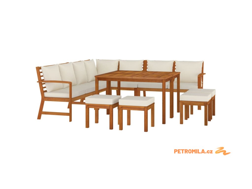 11dílný zahradní jídelní set s poduškami masivní akácie