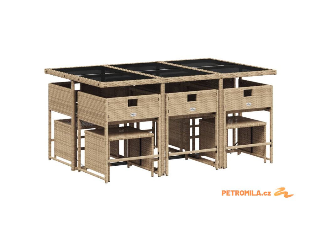 11dílný zahradní jídelní set s poduškami mix béžové polyratan
