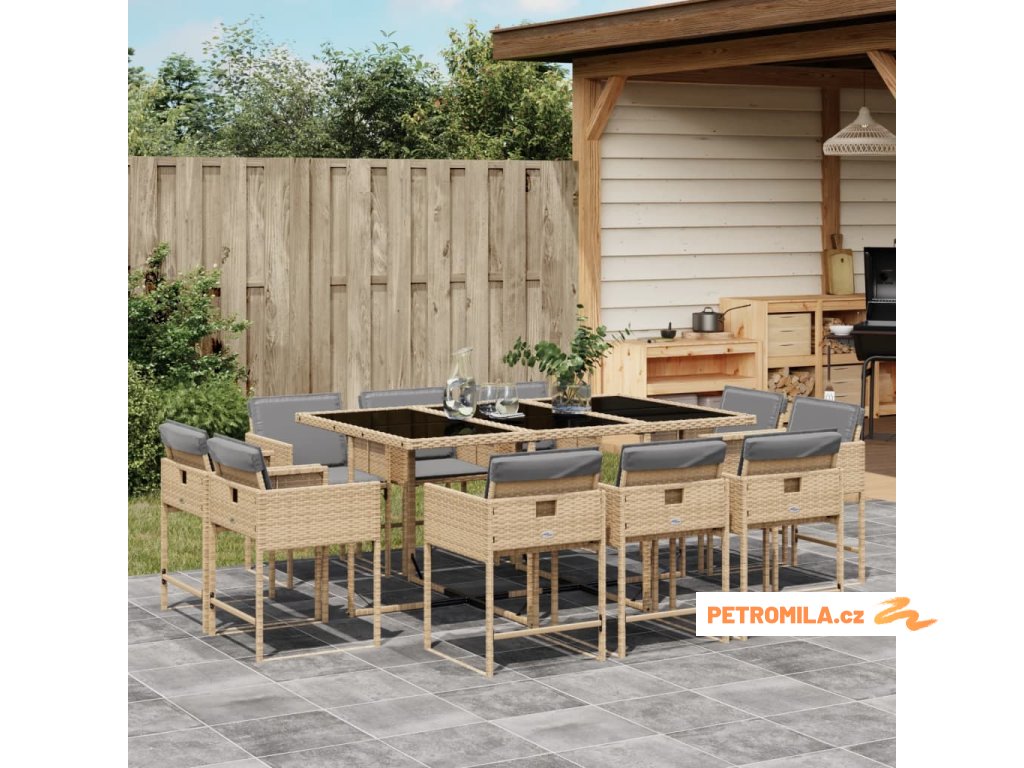 11dílný zahradní jídelní set s poduškami mix béžové polyratan