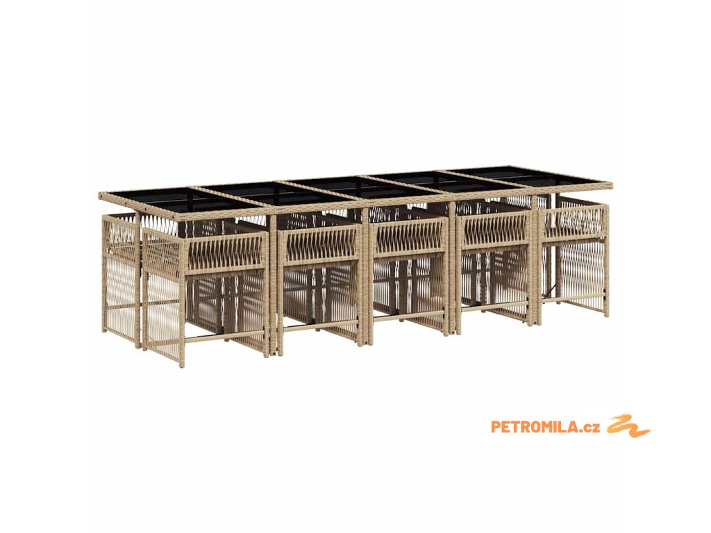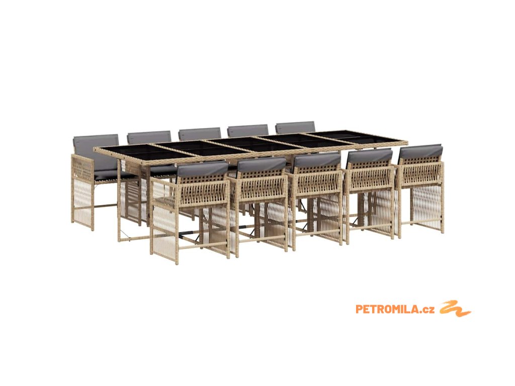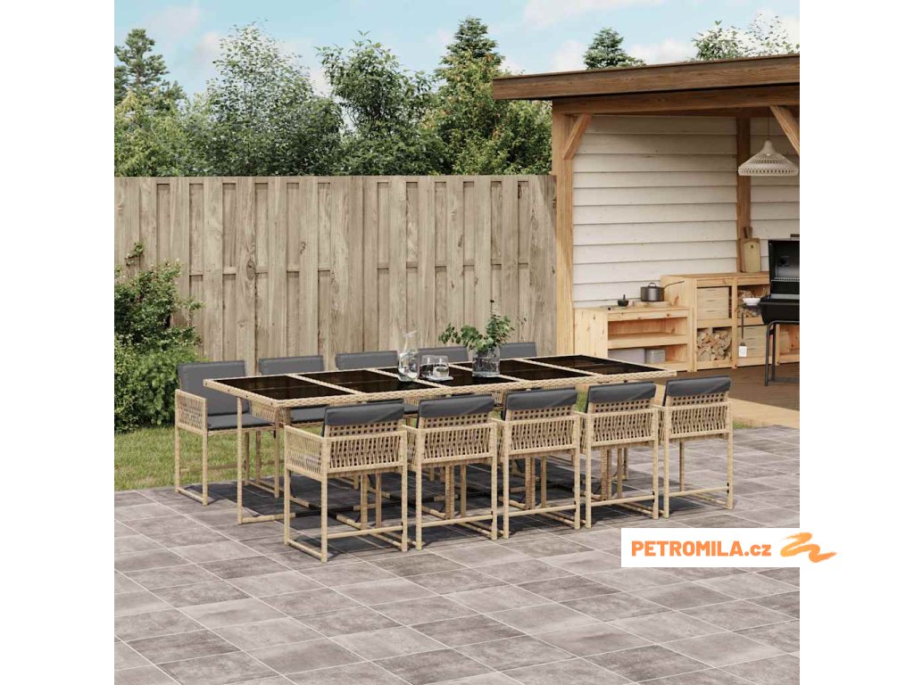 11dílný zahradní jídelní set s poduškami mix béžové polyratan