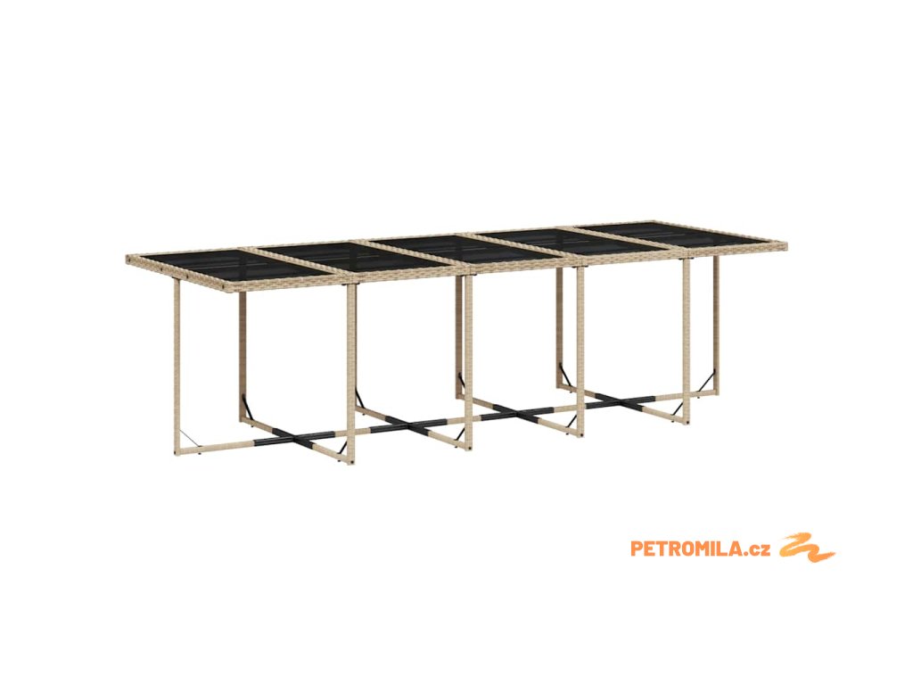 - Skleněná deska stolu: Deska venkovního stolu je zhotovena ze silného a odolného tvrzeného skla, takže ji snadno očistíte vlhkým hadříkem a zároveň do vašeho venkovního prostoru vnese nádech elegance.