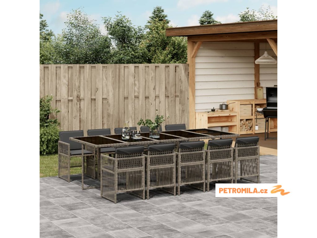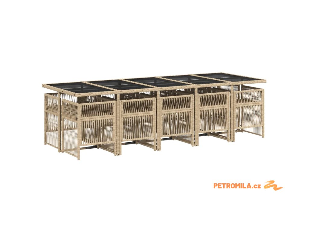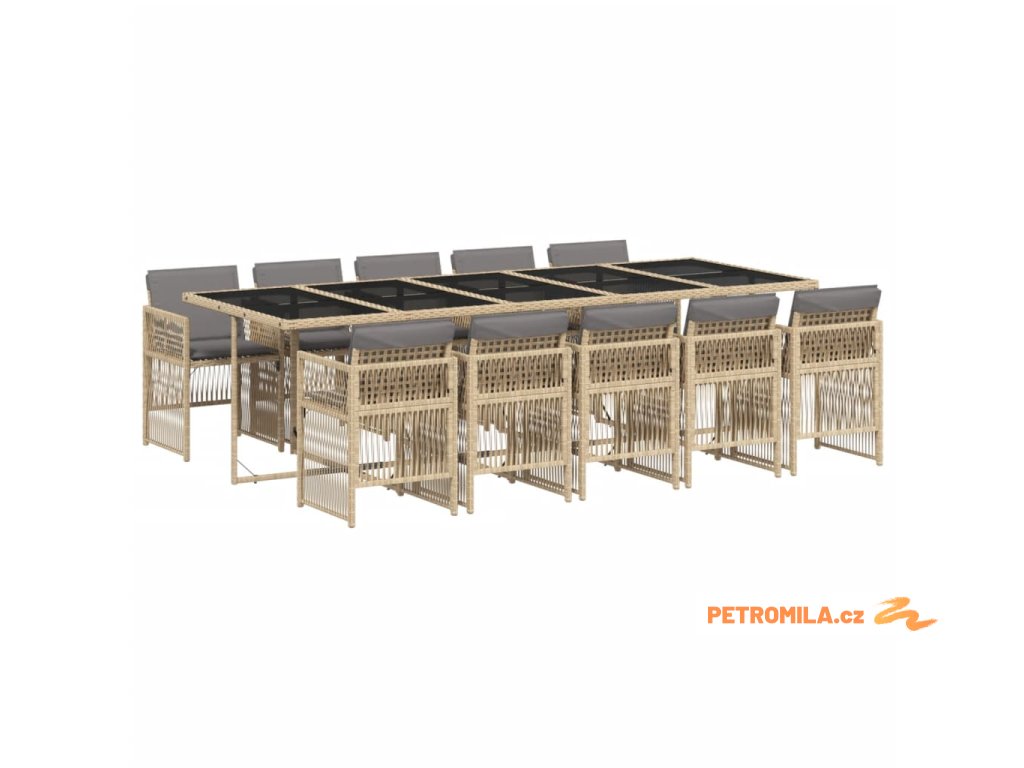 11dílný zahradní jídelní set s poduškami mix béžové polyratan