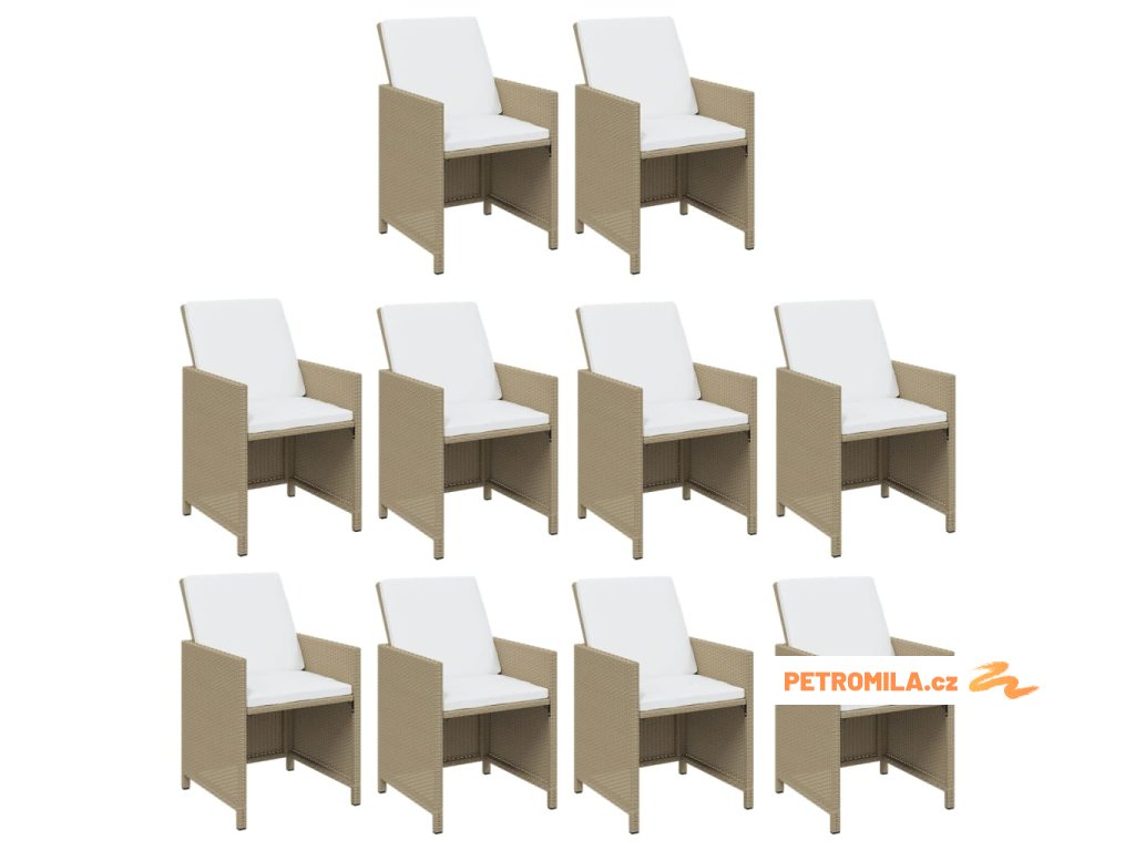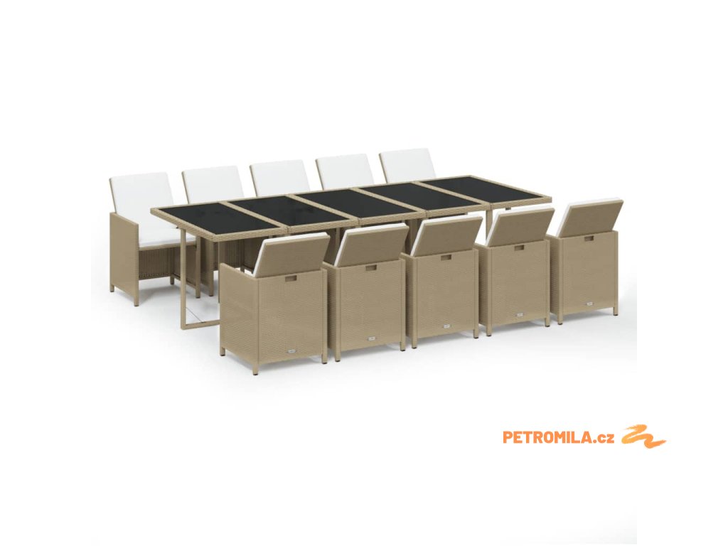 11dílný zahradní jídelní set s poduškami polyratan béžový