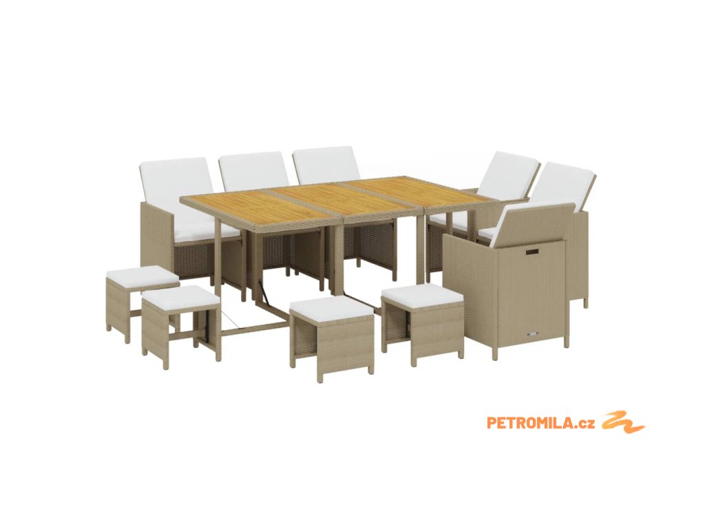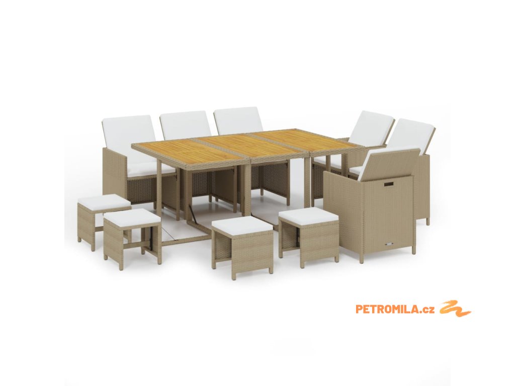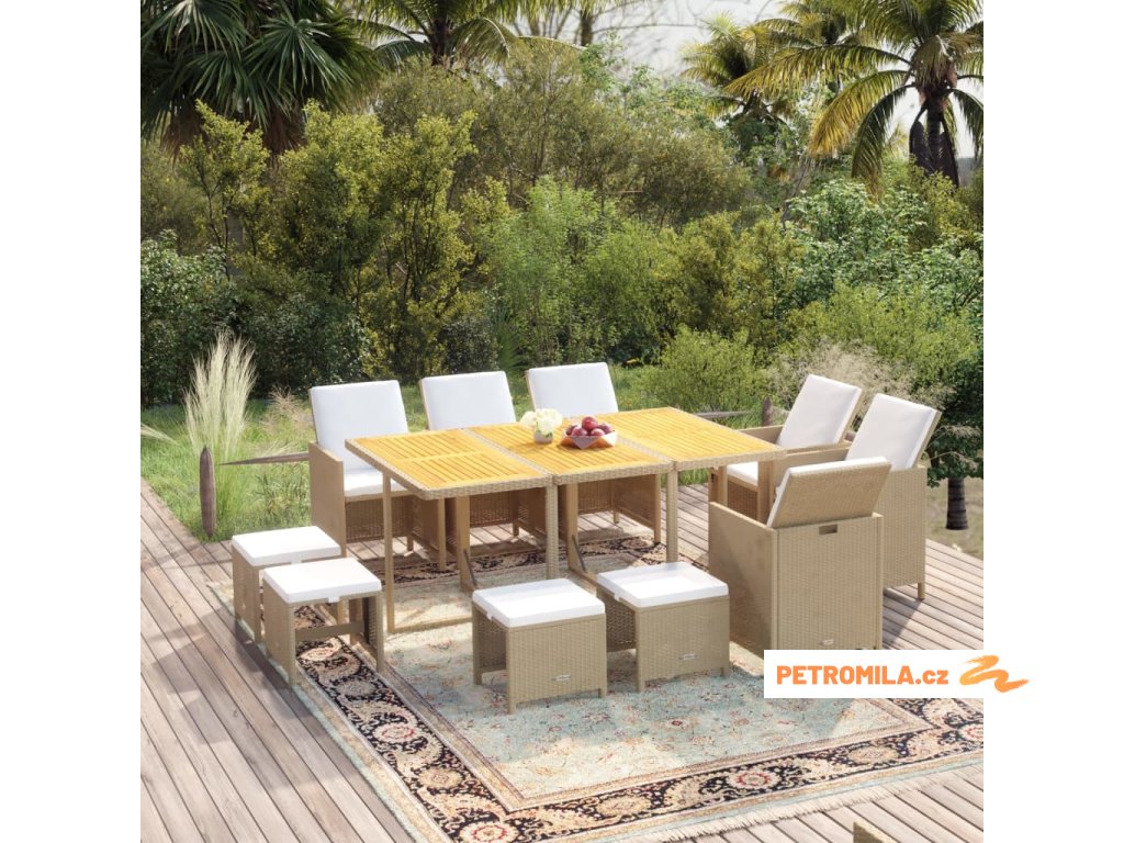 11dílný zahradní jídelní set s poduškami polyratan béžový