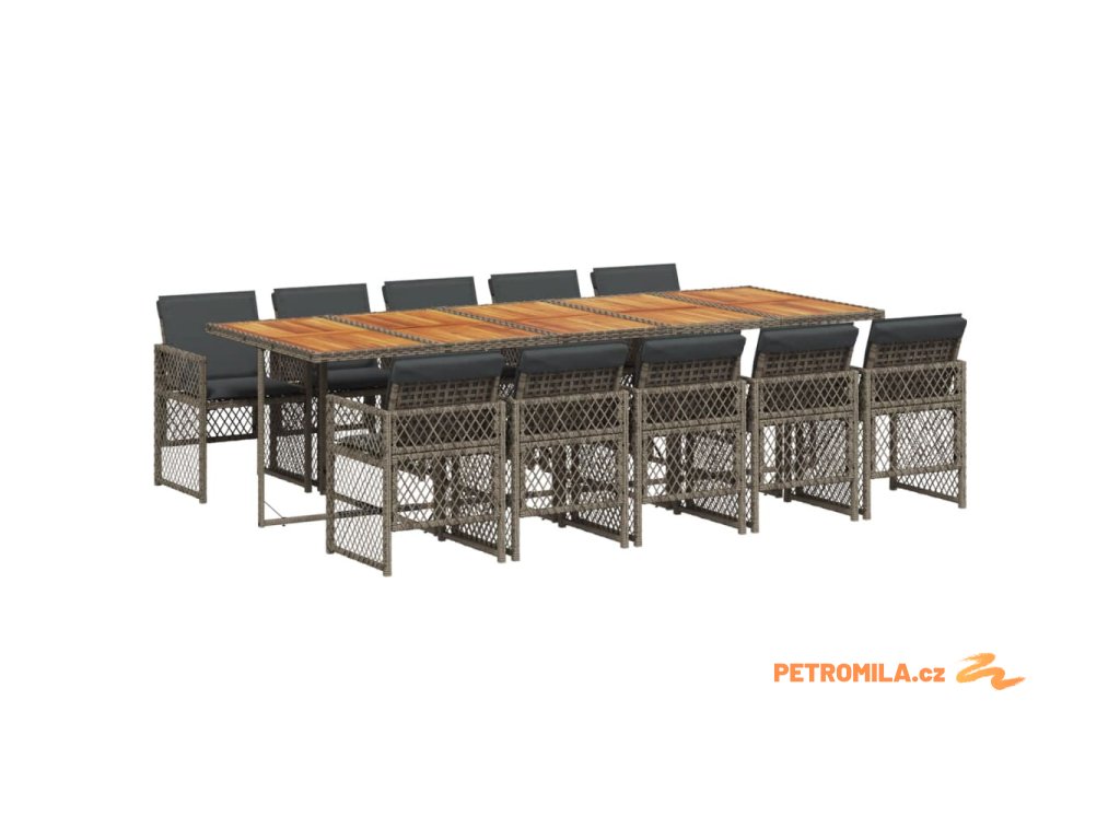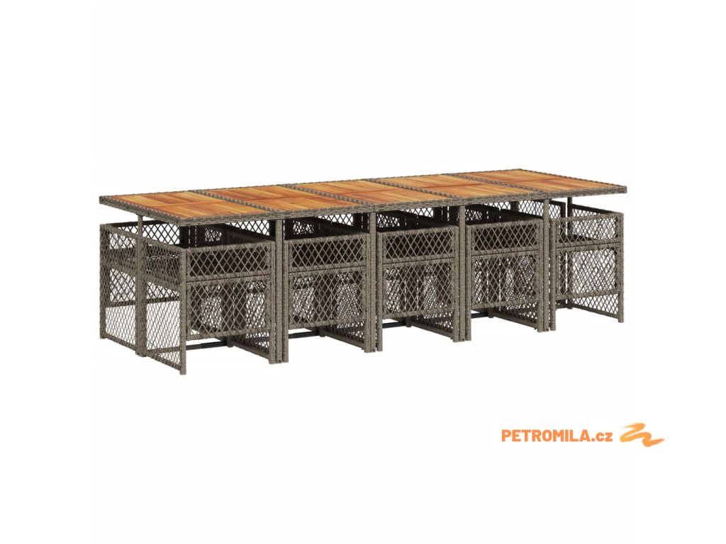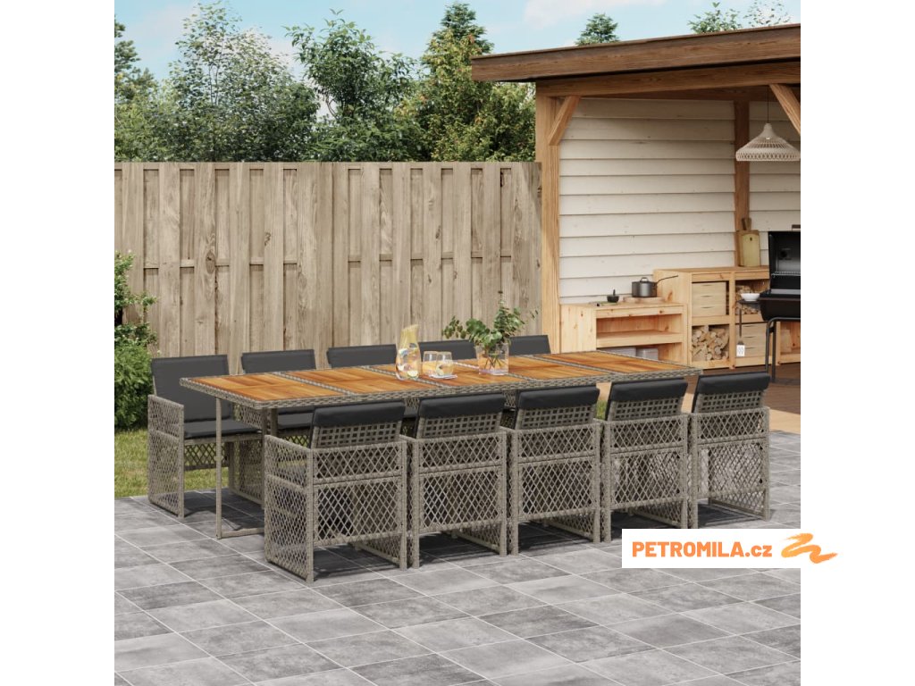 11dílný zahradní jídelní set s poduškami šedý polyratan