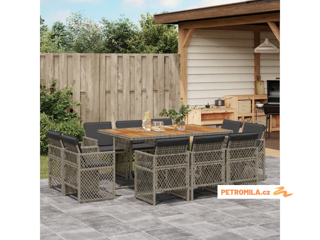 11dílný zahradní jídelní set s poduškami šedý polyratan