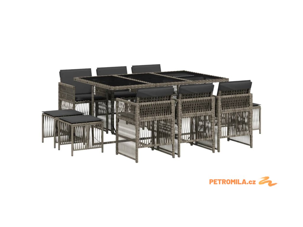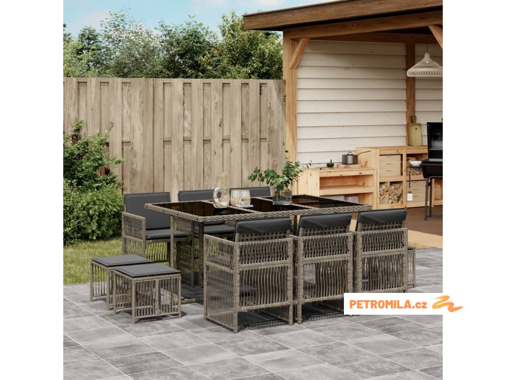 11dílný zahradní jídelní set s poduškami šedý polyratan
