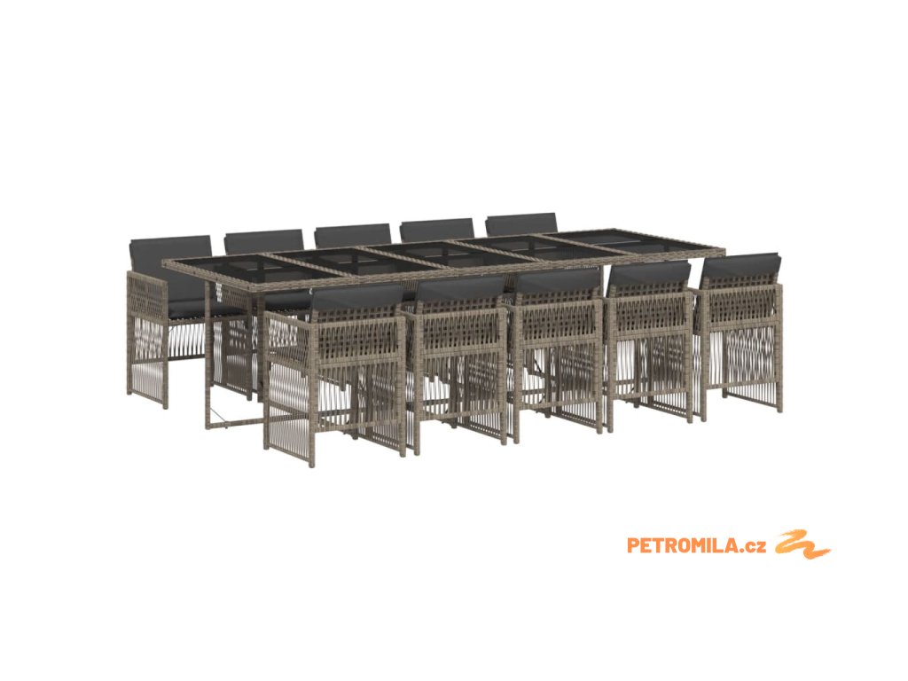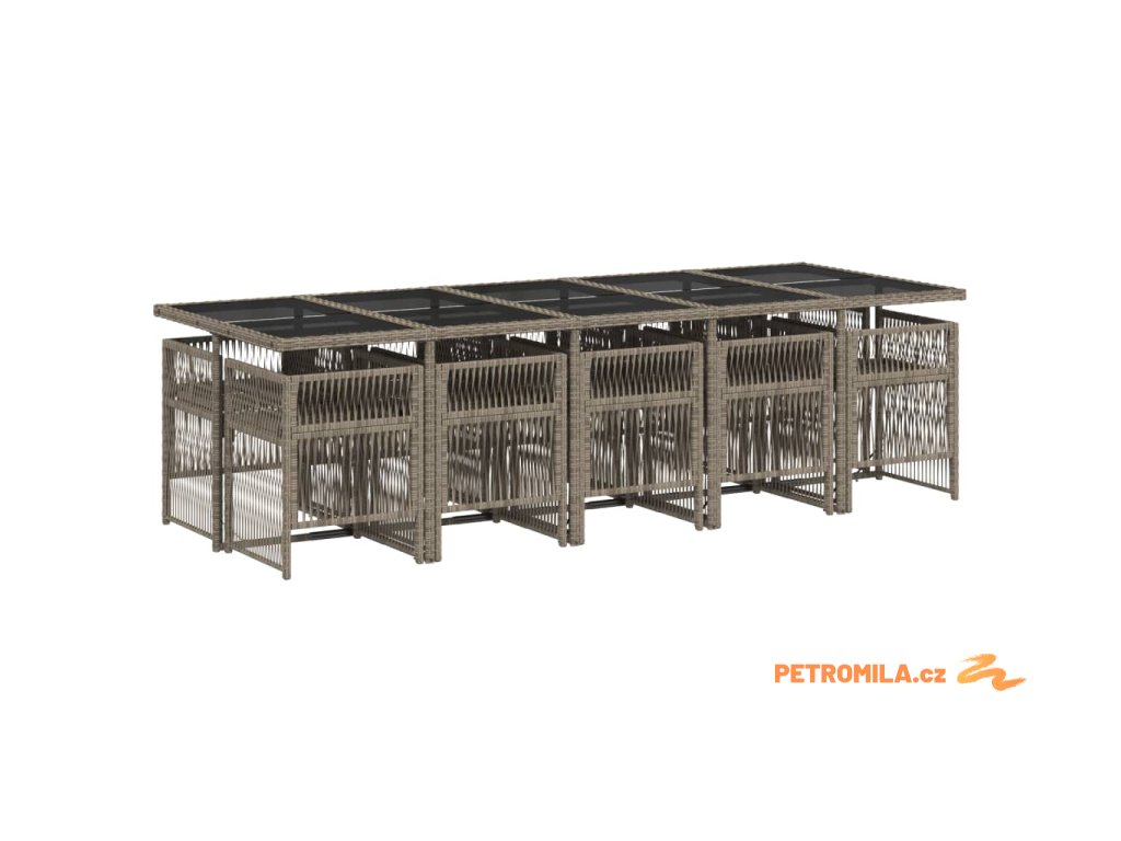 11dílný zahradní jídelní set s poduškami šedý polyratan