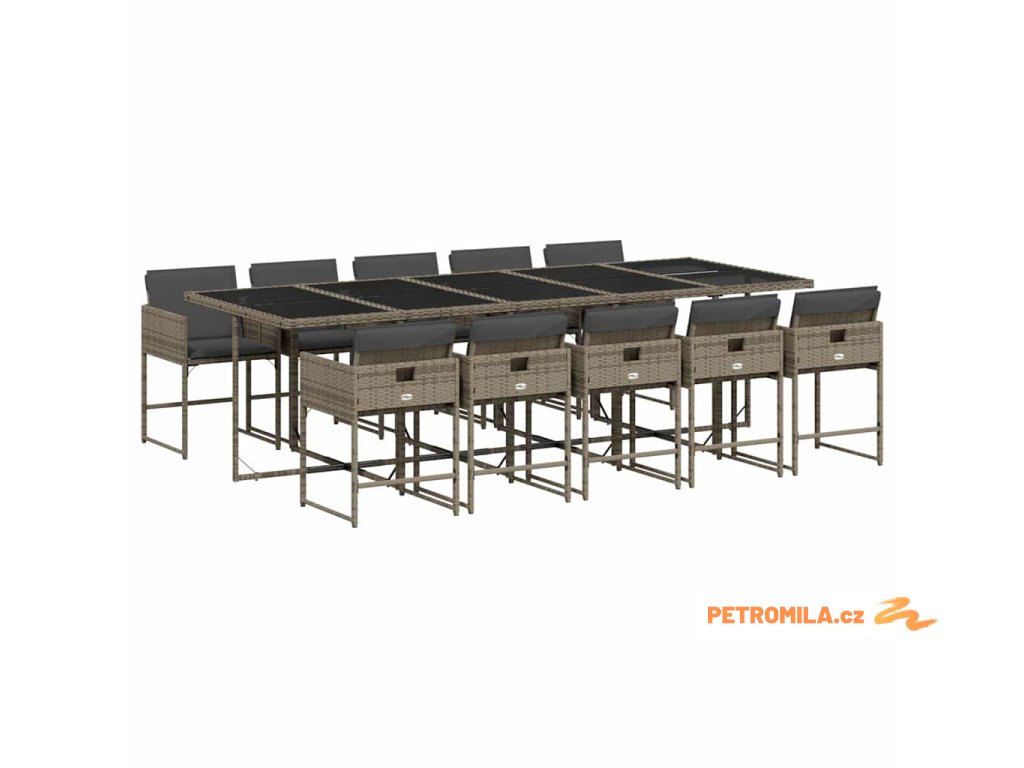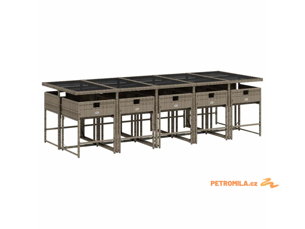 11dílný zahradní jídelní set s poduškami šedý polyratan