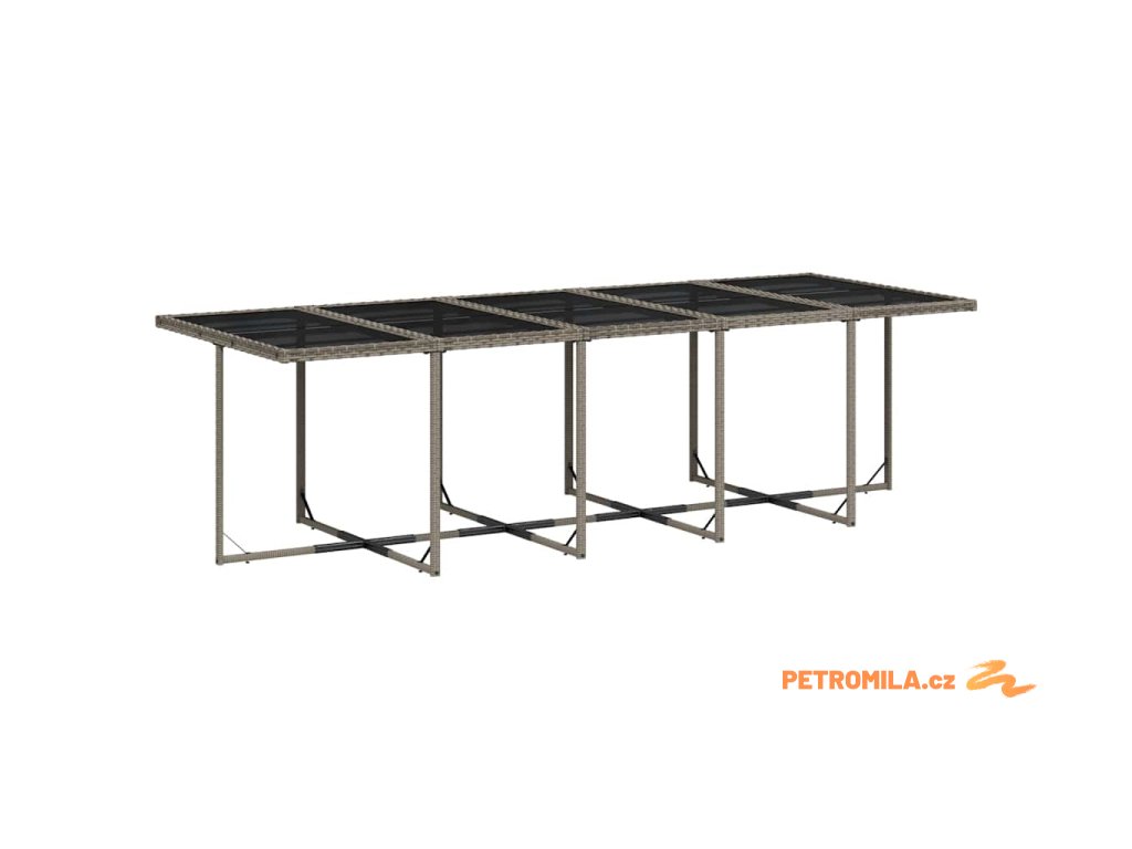 - Materiál: PE ratan, práškově lakovaná ocel, tvrzené sklo
