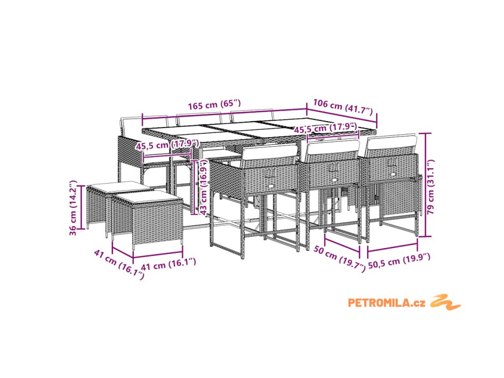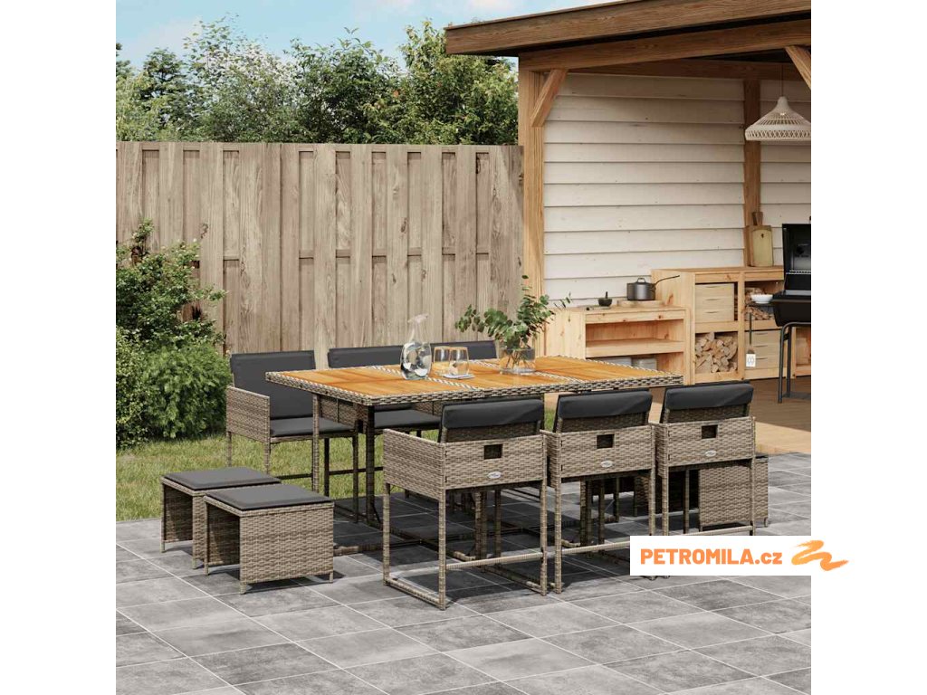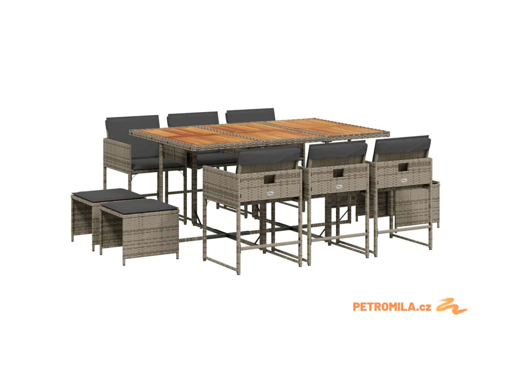 11dílný zahradní jídelní set s poduškami šedý polyratan