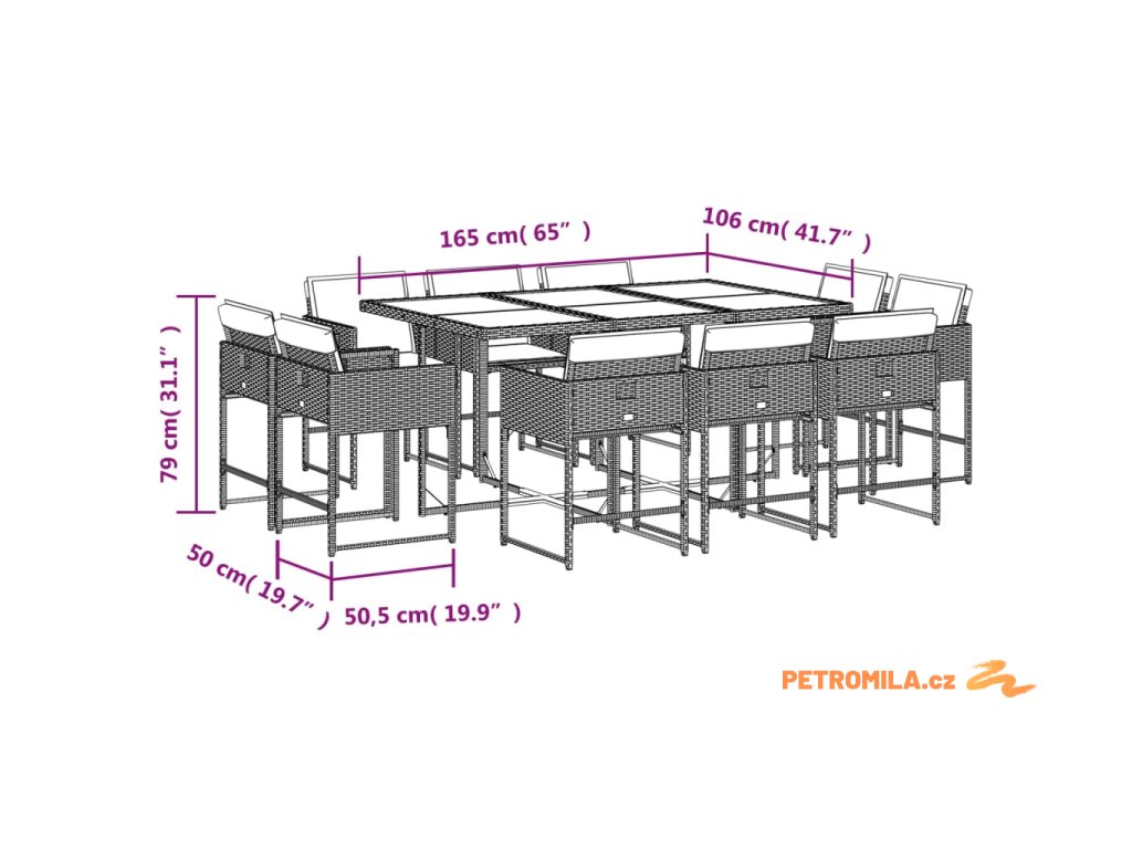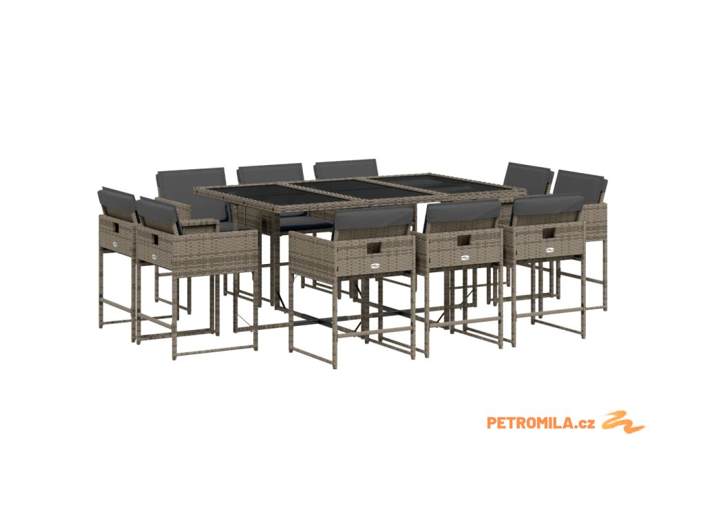 11dílný zahradní jídelní set s poduškami šedý polyratan