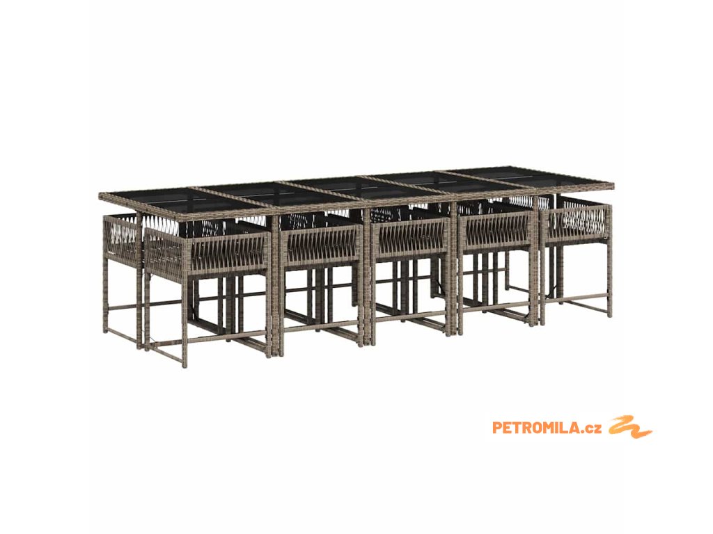 11dílný zahradní jídelní set s poduškami šedý polyratan