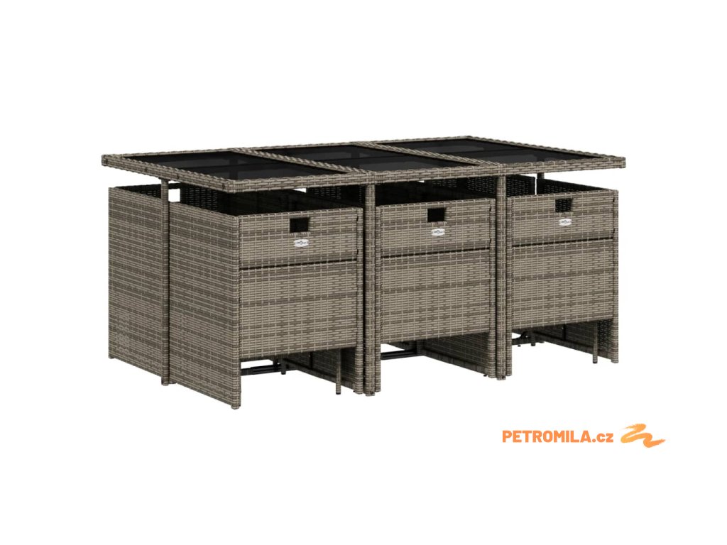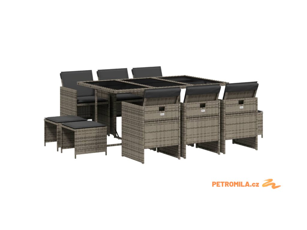11dílný zahradní jídelní set s poduškami šedý polyratan