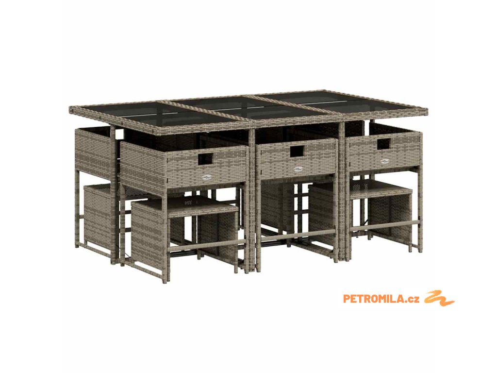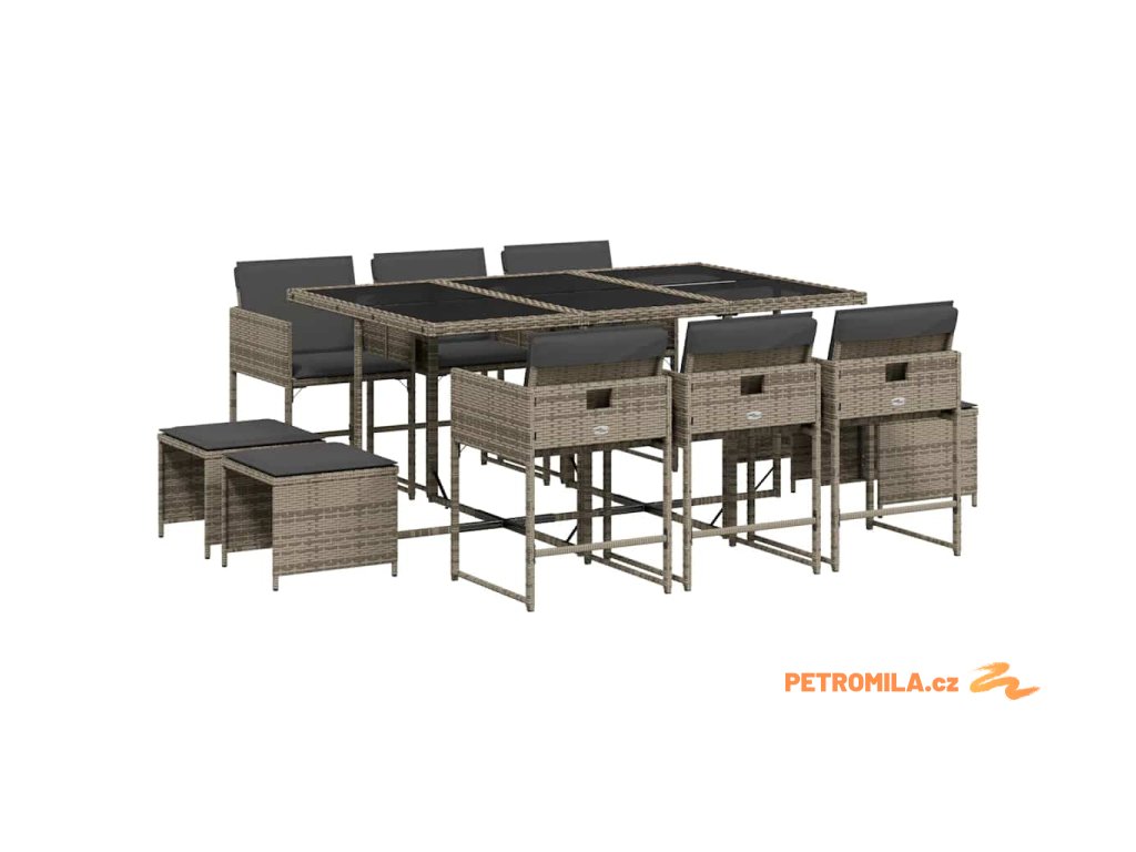 11dílný zahradní jídelní set s poduškami šedý polyratan