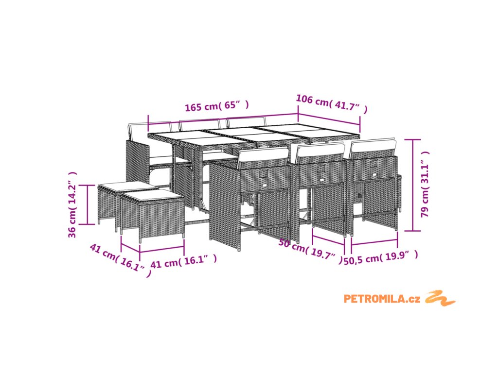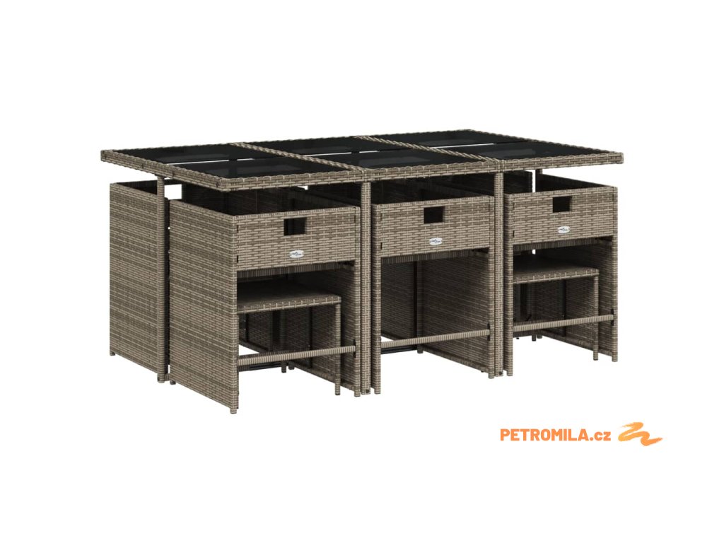 11dílný zahradní jídelní set s poduškami šedý polyratan