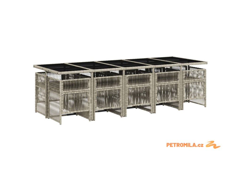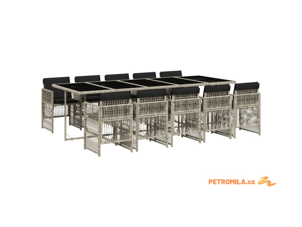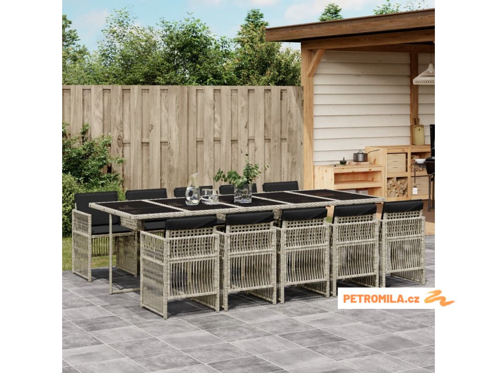 11dílný zahradní jídelní set s poduškami světle šedý polyratan