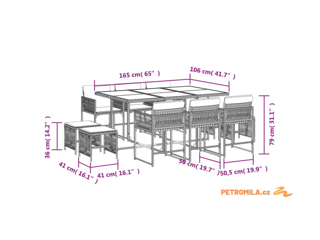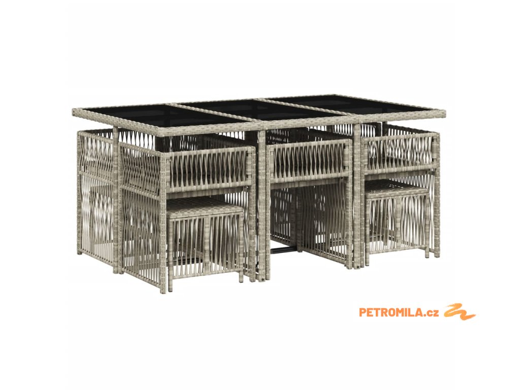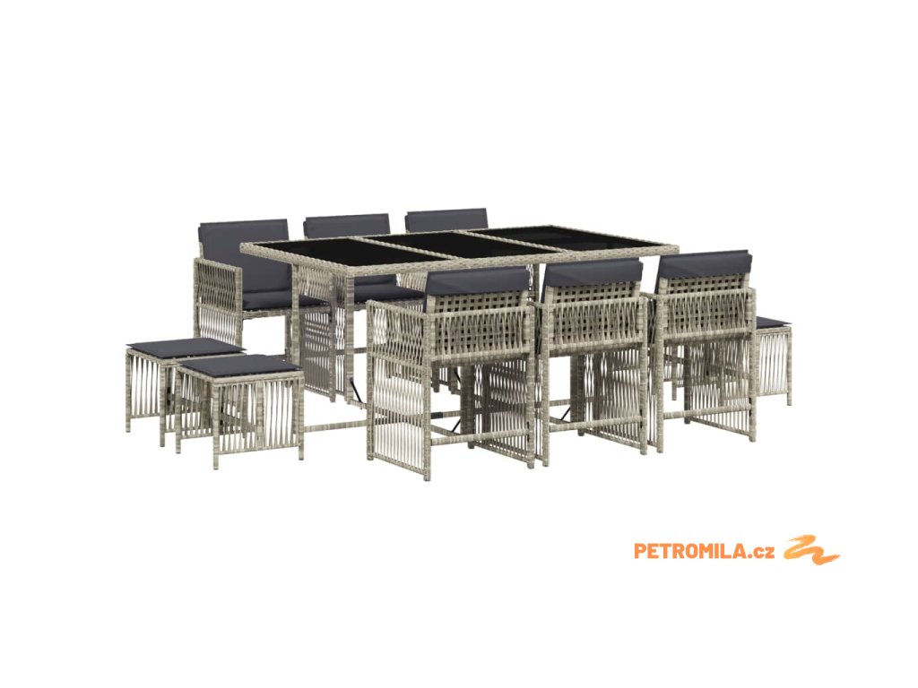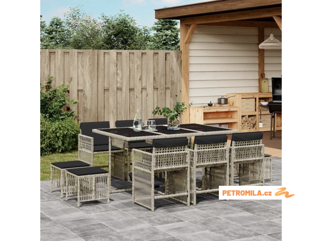 11dílný zahradní jídelní set s poduškami světle šedý polyratan