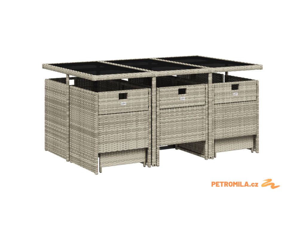 - Materiál: PE ratan, práškově lakovaná ocel, tvrzené sklo