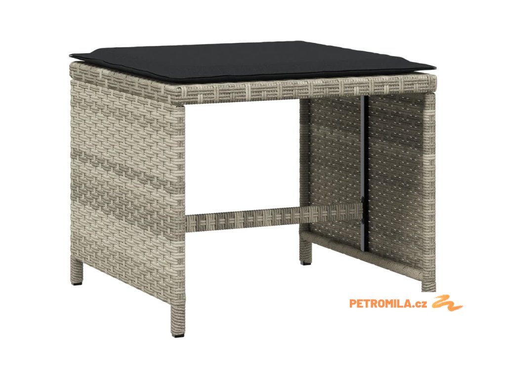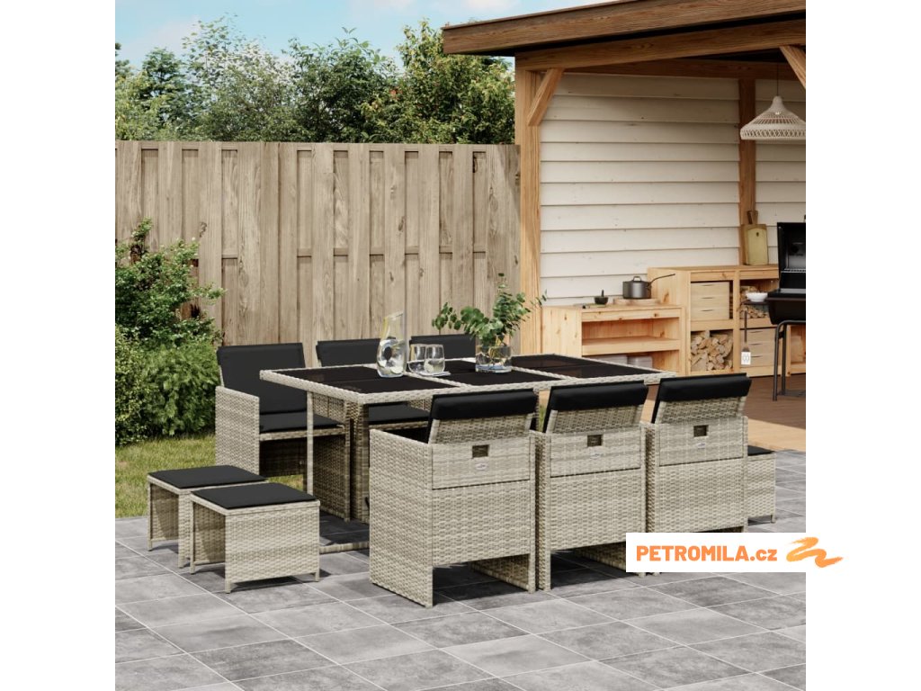 11dílný zahradní jídelní set s poduškami světle šedý polyratan