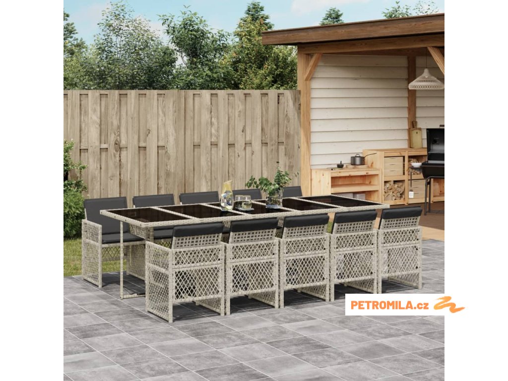 11dílný zahradní jídelní set s poduškami světle šedý polyratan