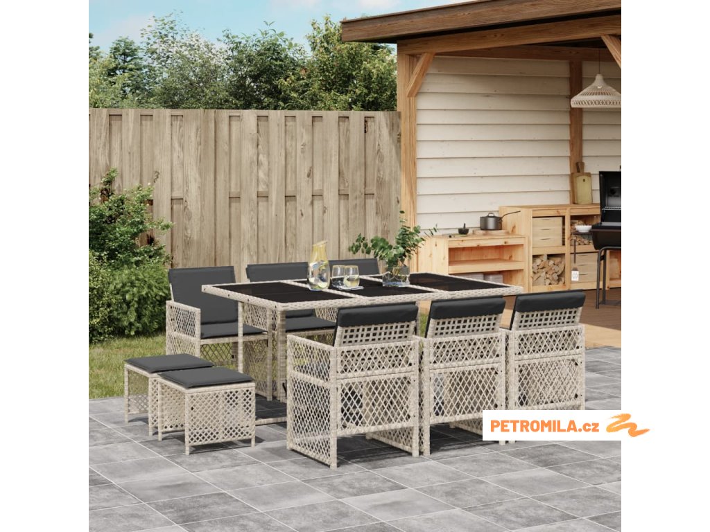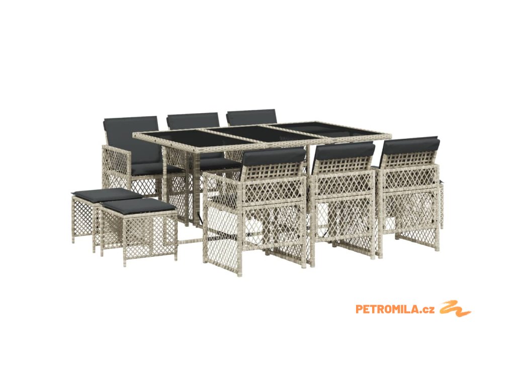 11dílný zahradní jídelní set s poduškami světle šedý polyratan