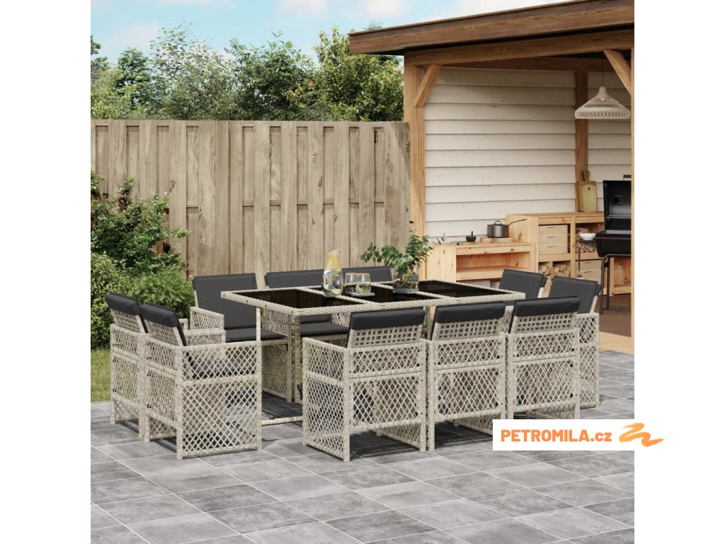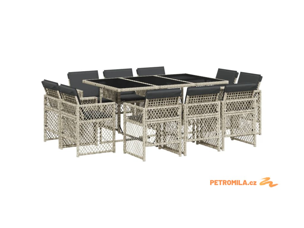 11dílný zahradní jídelní set s poduškami světle šedý polyratan