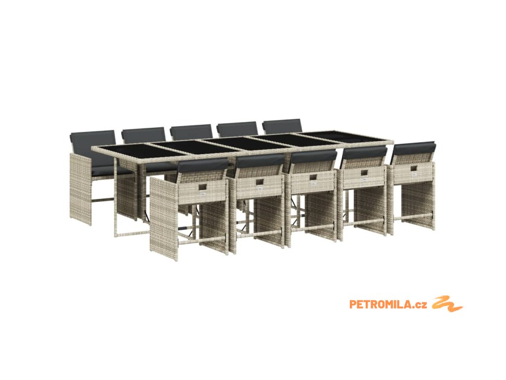 11dílný zahradní jídelní set s poduškami světle šedý polyratan