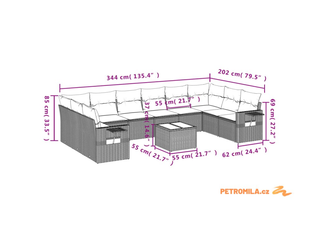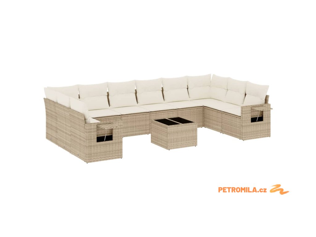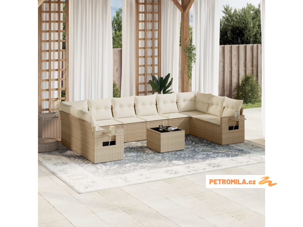 11dílný zahradní sedací souprava s poduškami béžový polyratan