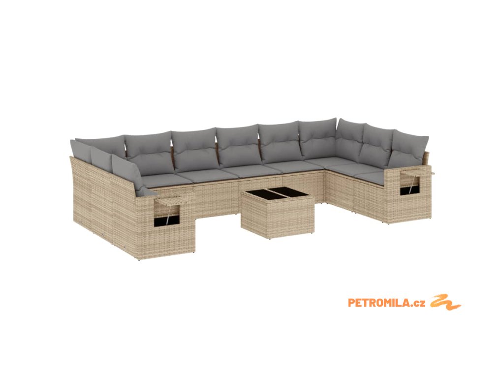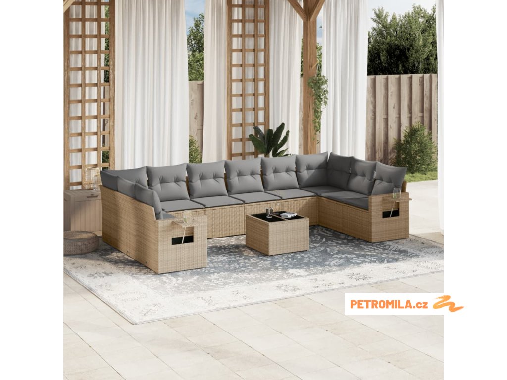 11dílný zahradní sedací souprava s poduškami béžový polyratan
