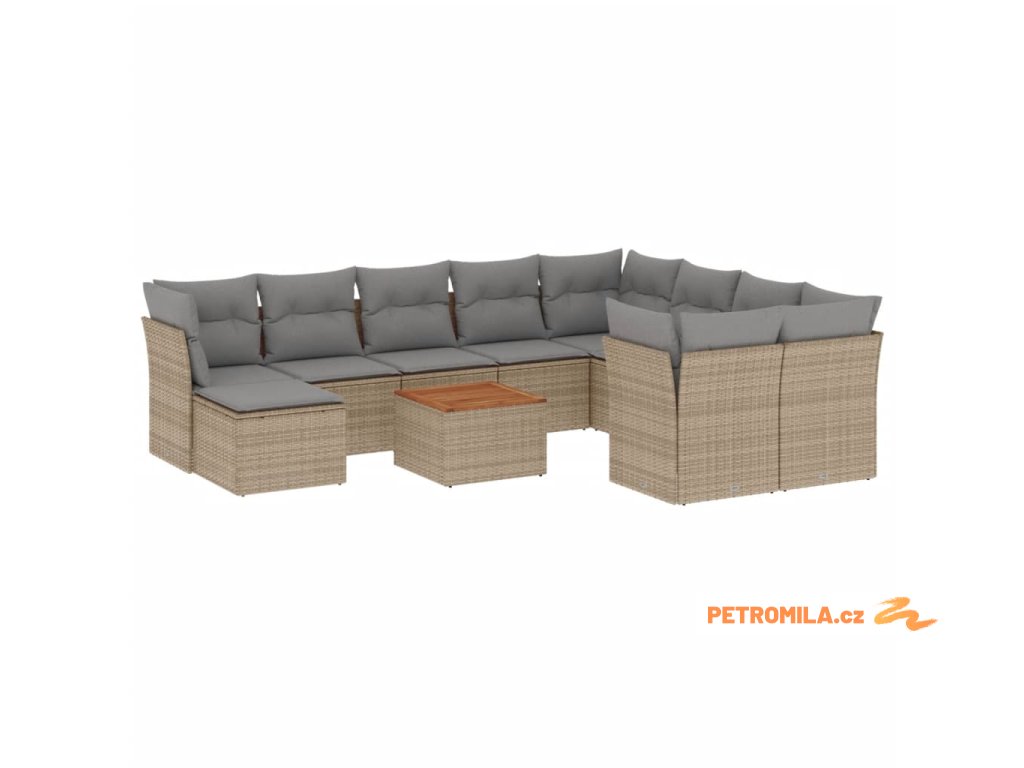 11dílný zahradní sedací souprava s poduškami béžový polyratan
