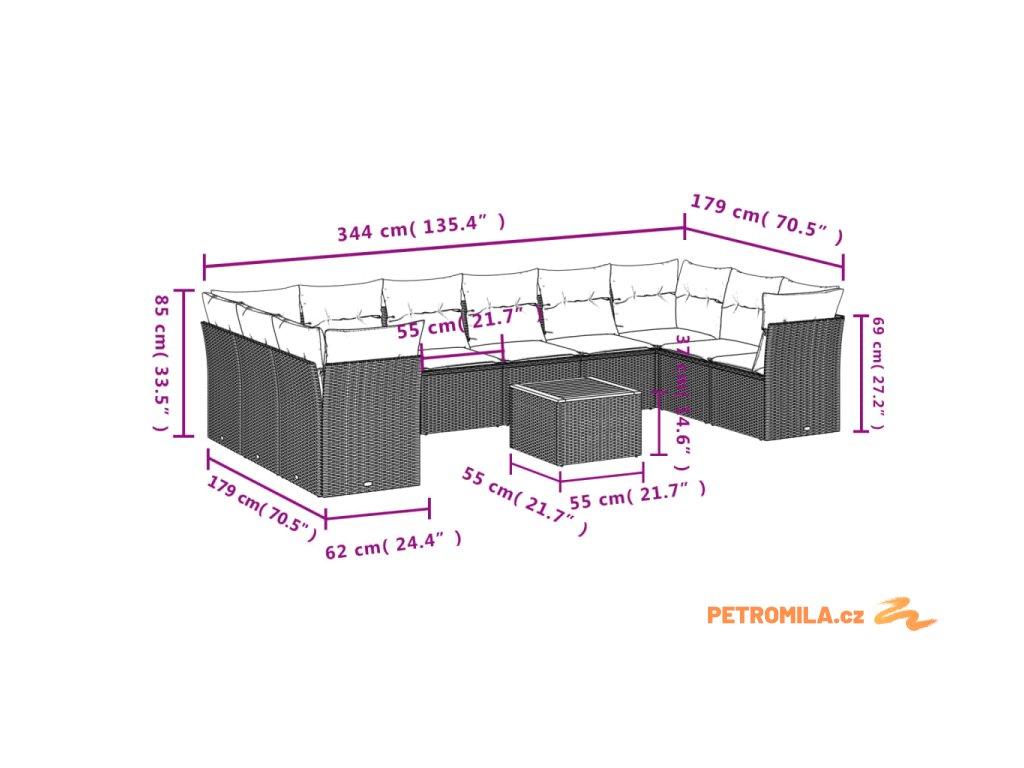 11dílný zahradní sedací souprava s poduškami béžový polyratan