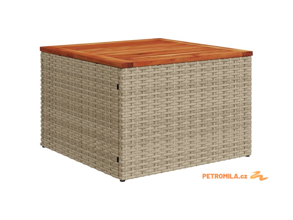 - Materiál: PE ratan, práškově lakovaná ocel, masivní akáciové dřevo s olejovou povrchovou úpravou