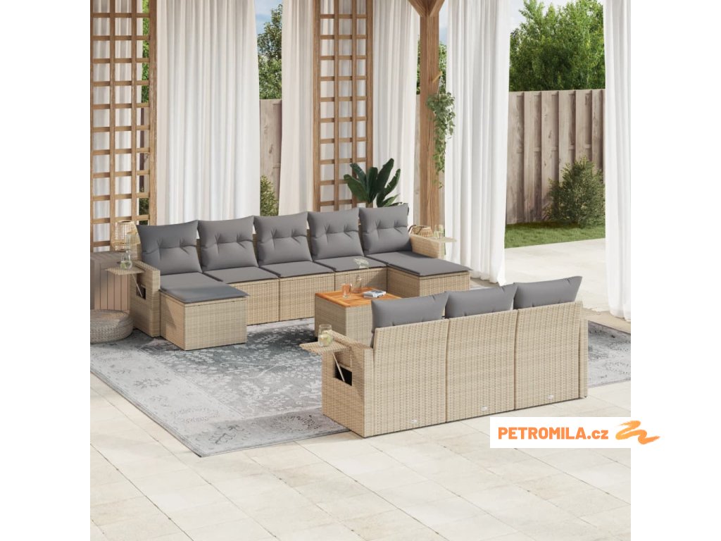 11dílný zahradní sedací souprava s poduškami béžový polyratan