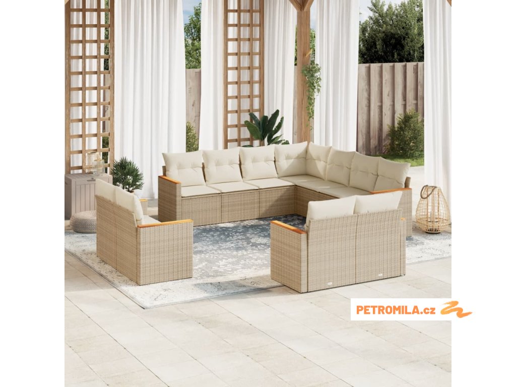 11dílný zahradní sedací souprava s poduškami béžový polyratan