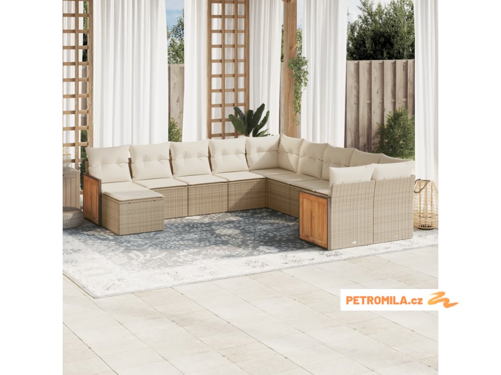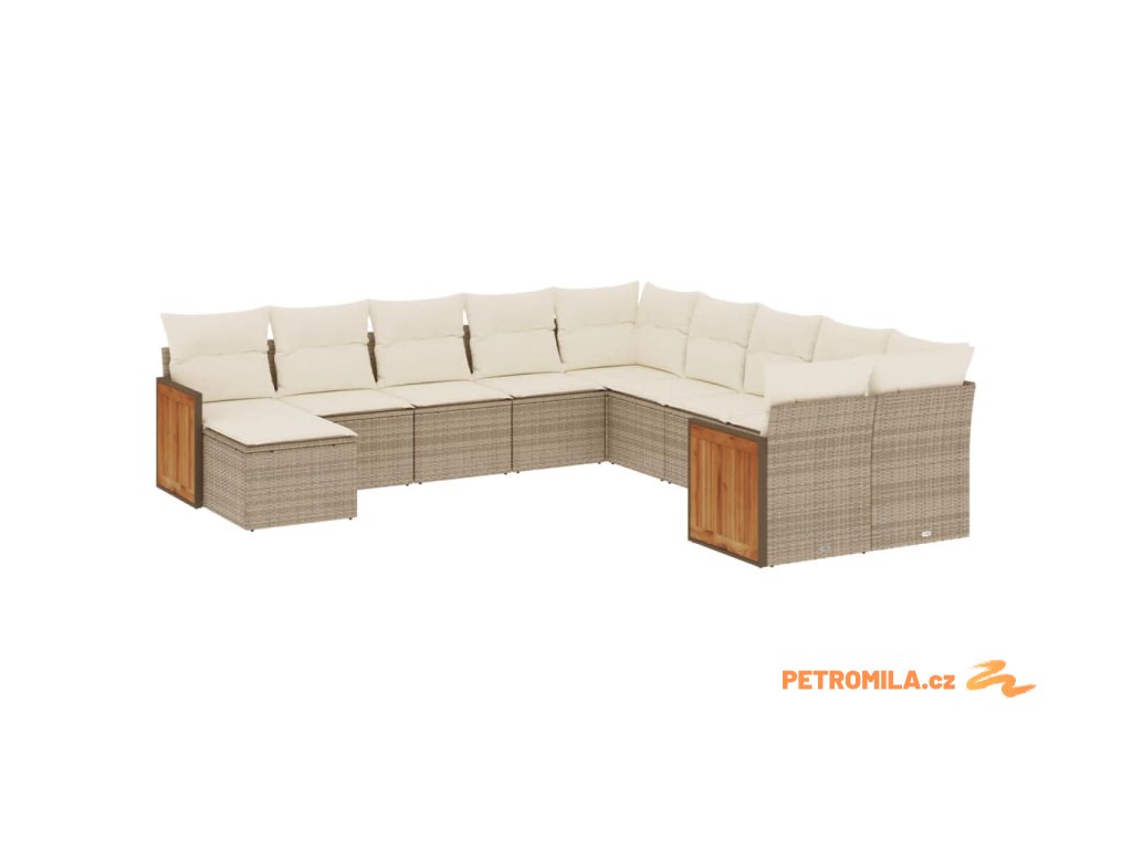 11dílný zahradní sedací souprava s poduškami béžový polyratan