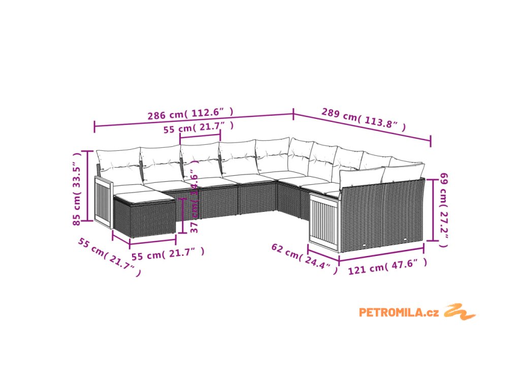 Tato zahradní sedací souprava je dokonalým doplňkem vaší zahrady, terasy nebo dvorku a poskytne vám pohodlné a příjemné místo, kde si můžete povídat s rodinou a přáteli nebo jen tak odpočívat a užívat si pobyt venku.