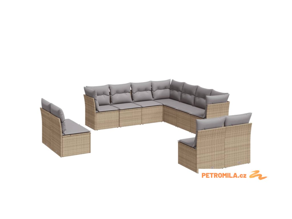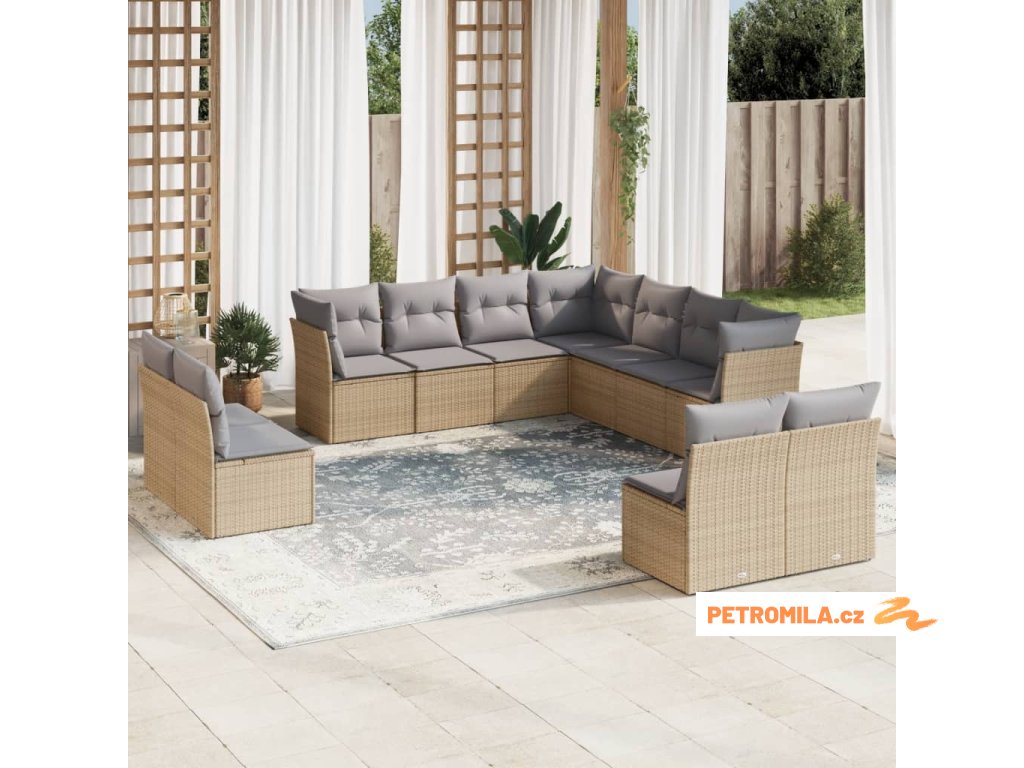 11dílný zahradní sedací souprava s poduškami béžový polyratan