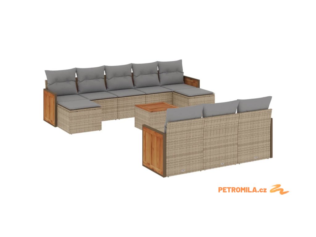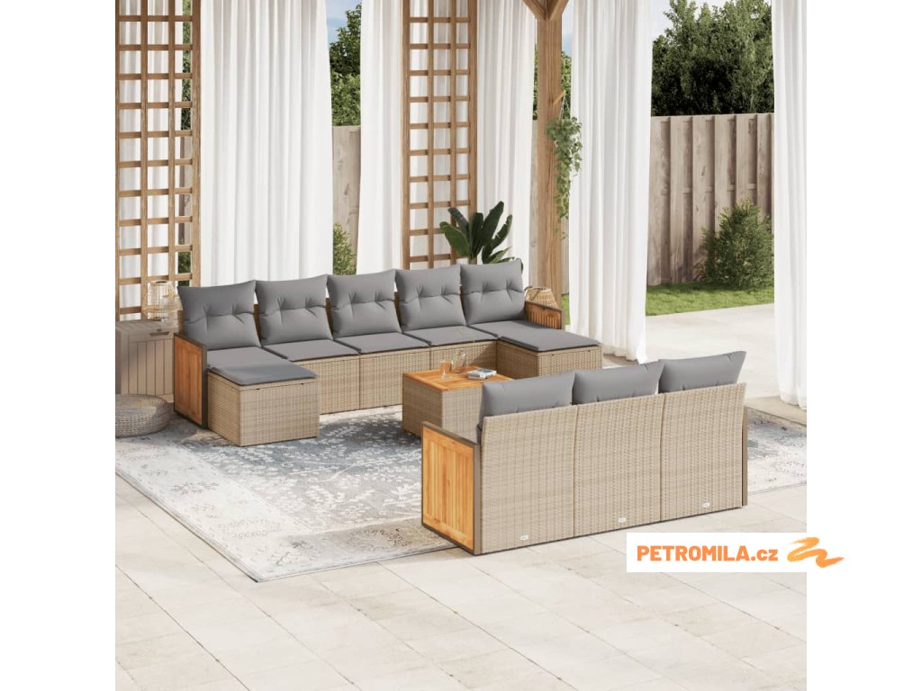 11dílný zahradní sedací souprava s poduškami béžový polyratan