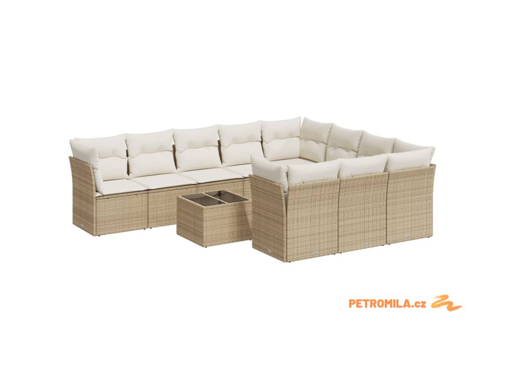 11dílný zahradní sedací souprava s poduškami béžový polyratan
