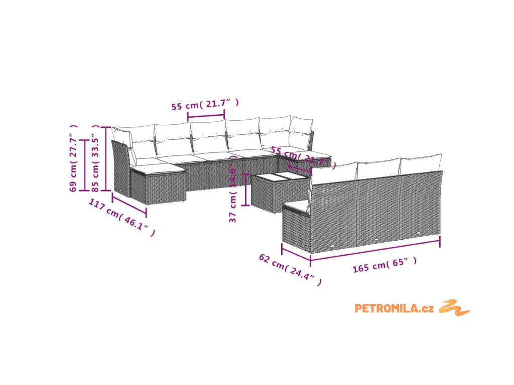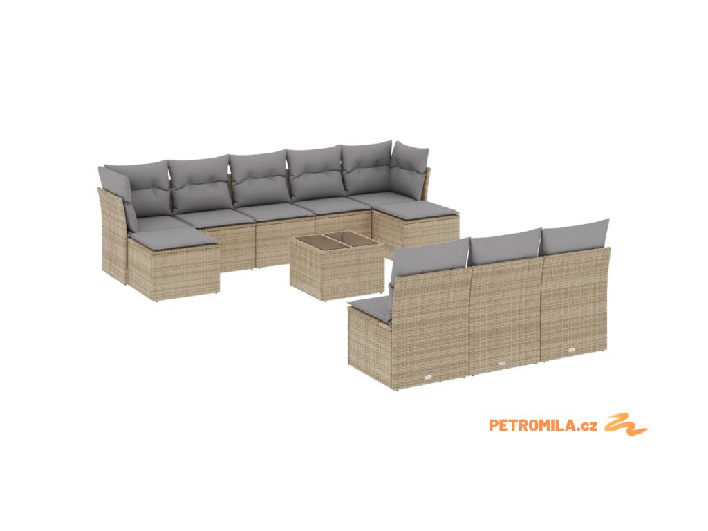 11dílný zahradní sedací souprava s poduškami béžový polyratan