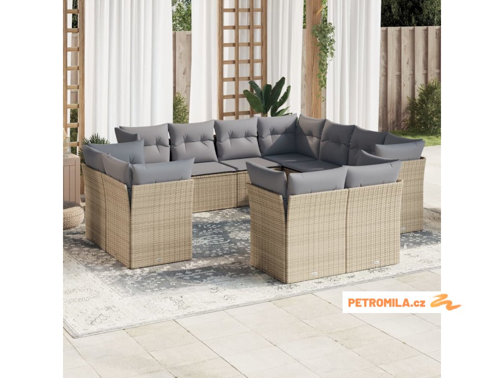 12dílná zahradní sedací souprava s poduškami béžová polyratan