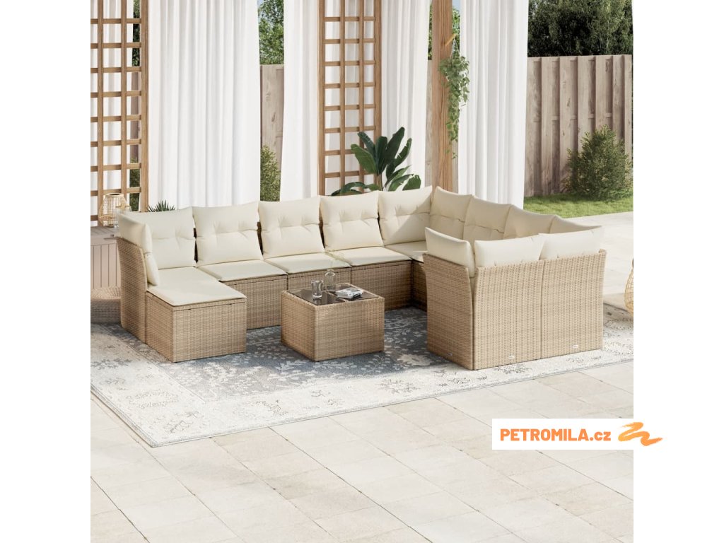 11dílný zahradní sedací souprava s poduškami béžový polyratan